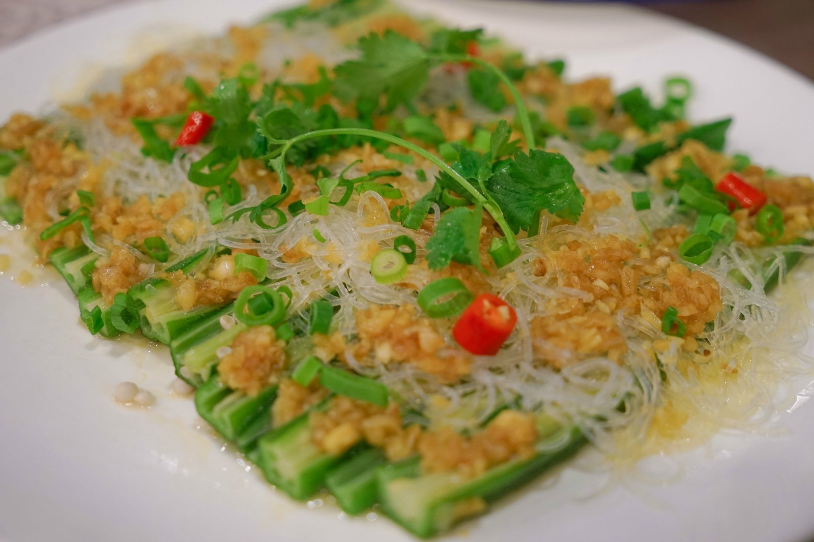 素菜点了一道蒜蓉青葵,感觉这次秋葵制作的力度稍微有些过,秋葵不在清脆,反而有些偏软,整体的口感也会稍有影响。他们家热菜推荐铁板鱿鱼和铁板茄子。