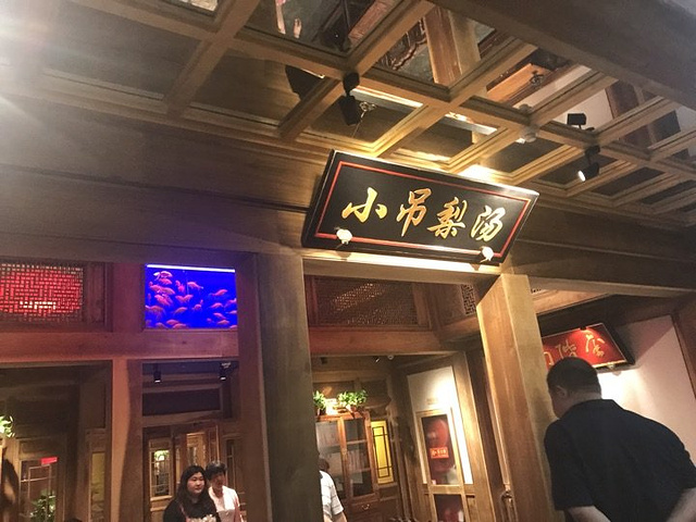小吊梨汤在北京分店很多 颇为特色的北京菜馆 长安商场五楼 如果坐直达电梯的话只能坐到四楼 然后楼梯走一层上去 进去美食区 📍小吊梨汤(长安店) 服务员很热情 店面一目了然 大厅摆放二人和四人方桌 一侧设有半开放式包厢 整体装修老北京古韵风还是很美滴😁 上菜速度很快 菜品出品不错分量足 🌟小吊梨汤 💰28/壶 作为广东人 喝上去的感觉就是“凉茶”😂 在大夏天的北京 特别水土不的时候喝上一杯这个的确很舒坦 🌟龙豆炸灌肠 表示不懂灌肠是什么就点了 结果吃了其实也没吃出来是什么😅😅此时寻求度娘帮忙:老北京的灌肠有两种,一种是用猪肠子做的“大灌肠”;另一种是用淀粉做的小灌肠,也叫粉灌肠。 那那那这个应该是粉吧😂蛮好吃的哈哈哈 不会很油哎 🌟锅烧酥羊肉 💰78 羊肉味道超棒 肥瘦相间骚气十足嘻嘻 不蘸酱就贼好吃了 外酥里嫩的 给的干碟和甜辣酱也超好吃的😋就是分量有点点少 (贪心哈哈哈) 吃起来挺多的了😂🙈 🌟清炒鸡毛菜 第一次吃哈哈哈 南方没有?还不错 吃起来很爽口 味道和气味啥没啥特别 🌟青梨拌菜 来北京之后去到每家店都会爱点拌菜 这家的拌菜做的真的很不错哎 分量足 调味很棒 蔬菜什么的搭配的很喜欢😘梨的出现真的很锦上添花😍 🌟干酪鱼 吃起来像牛奶布丁淋上焦糖/黑糖/蜂蜜 不过不失吧 没有感觉能成为招牌哎🙈 🌟记忆大懒龙 个人对这类主食一般般的缘故吧 我觉得就是阳江豆豉酱拌肉沫夹馒头/花卷 而且是没弹性的馒头花卷😂🙈