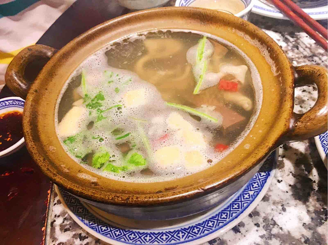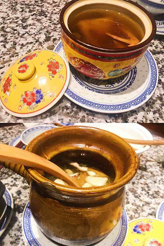 南京大牌档算得上最具南京特色的餐厅了。环境很有特色,古色古香的,桌子是那种木质四方桌,店里挂满灯笼装饰,服务员都是穿的民国风的斜襟布衣,很有民国风。 大牌档的菜大都是南京特色或江苏比较有代表性的菜。特地带爸妈来品尝。 【清炖狮子头】地道淮扬风味,入口鲜嫩无比。文火浸养足足六小时,功夫可不一般。我们特地点了两份生怕不够吃。除了肉鲜美,汤汁更是一绝,清甜可口。 【天王烤鸭包】去了这么多地方,头一次见到用烤鸭作为包子馅,并且做出来味道如此之好。一笼包子也不算贵,只要12元。后来打听了一下,天王烤鸭包只会出现在南京大牌档,不会出现在其他地方。很有特色的一道菜,强烈推荐。 【鸭血粉丝汤】南京特色鸭血粉丝汤是必须的。除了好吃暖胃的鸭血,鸭胗和鸭肠嚼起来也很筋道,汤也足够鲜美。四人分一碗鸭血粉丝汤,其实是绰绰有余的。像下面的小碗可以盛四碗呢。 【老火炖白鸽汤】【虫草花炖鸡汤】由于爸爸爱喝汤,特意点了两份汤给他。鸡汤和白鸽汤滋补身体,经过小火慢煨的鸡汤,汤汁清亮,味道至鲜,在熬制过程中加入名贵滋补药材虫草花,滋补肺肾等多种药效。味道也非常好。 【民国美龄粥】由于男友强烈推荐点了两份。想不到一锅粥也能如此美味。粥的味道是甜的,加入了山药。非常入味,山药的脆脆的,粥熬到糊糊的,恰到好处。还有养颜美白的功效。 【地锅小公鸡】酥香的烧饼配上甜美的鸡肉,量大切实惠。 现在不用去南京也能吃到地道的金陵菜,这家就非常正宗。