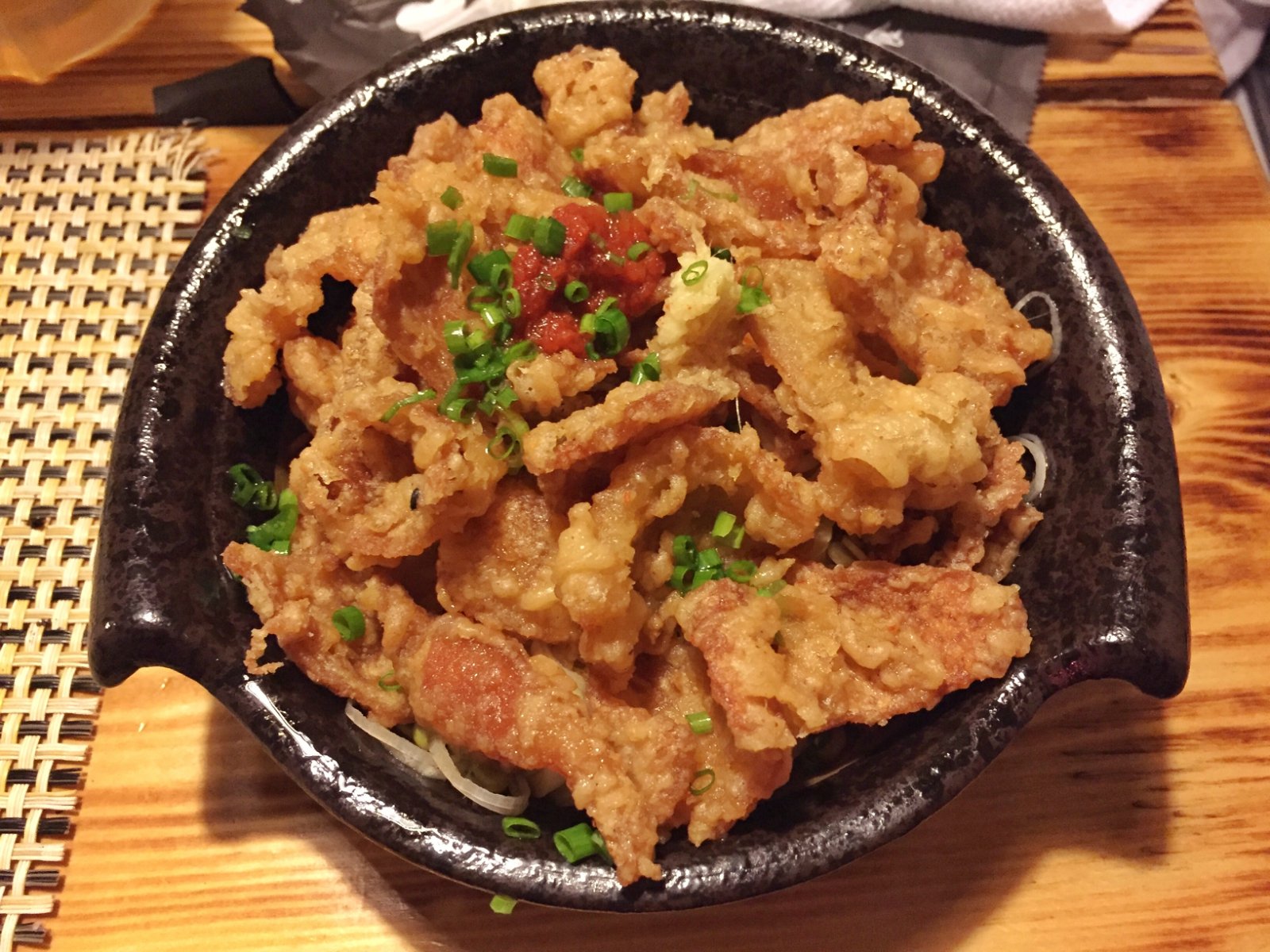 厚切而成,口感也很满足,大大的一口肉,可以说是非常满足了。而且口感出奇的嫩,第一口真的是又吃到惊艳的感觉。感觉酱料稍微有些逊色。他们家的烤鸡软骨是我也比较喜欢的一道。对这种口感脆脆的软骨真的是完全不能抵抗,吃起来很不错,一口一口嘎嘣脆,而且汁水满满,肉也完全吸收了酱汁,入味十足。