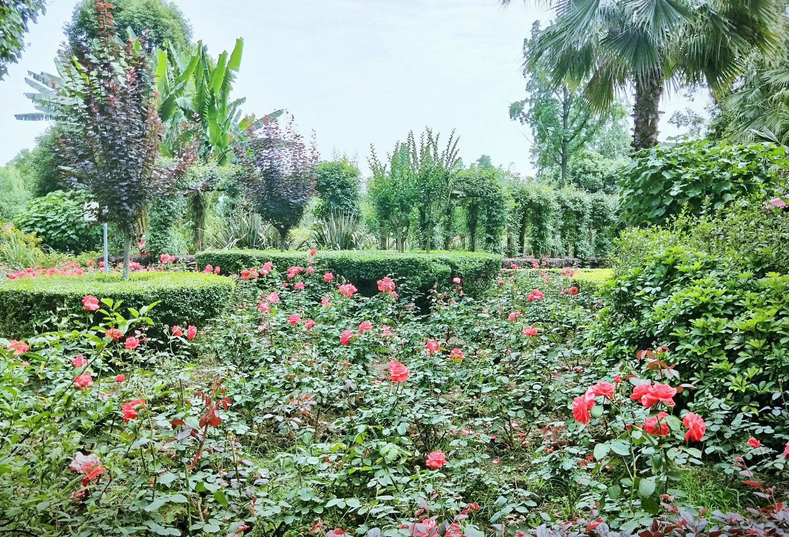 玫瑰苑的地面上散落着凋谢的花瓣,仍有一些还在倔强的昂头🌸 🌸 ,玫瑰苑里面还有玫瑰餐厅,可以坐这里休息吃东西。