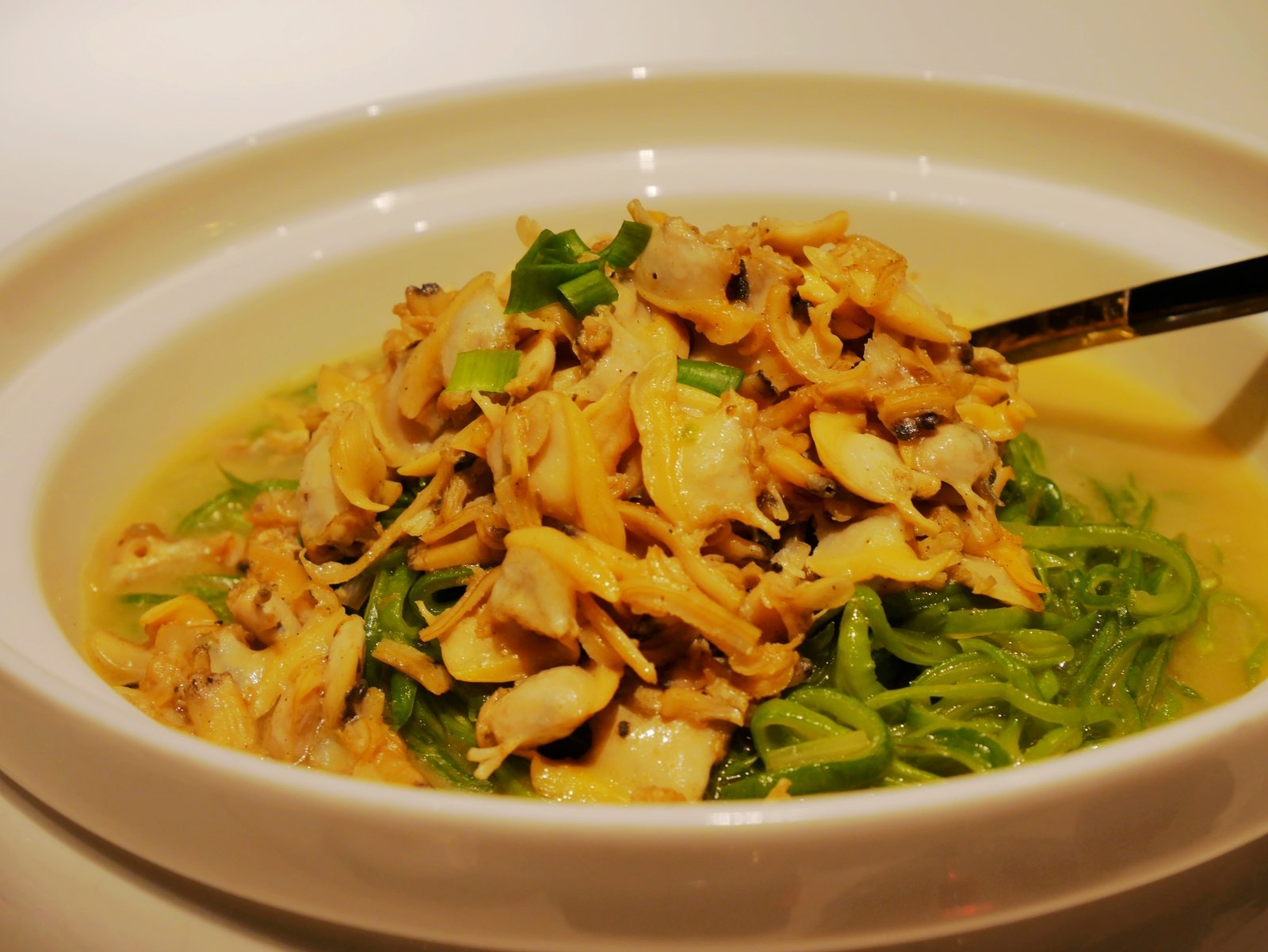 豆角丝炒蚬子,豆角里有海鲜的香气,非常好吃的一道菜,又不油腻。