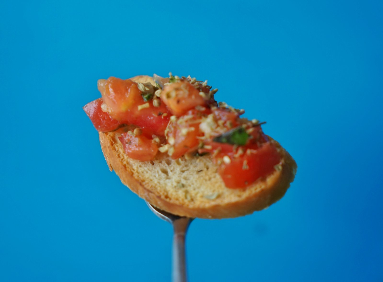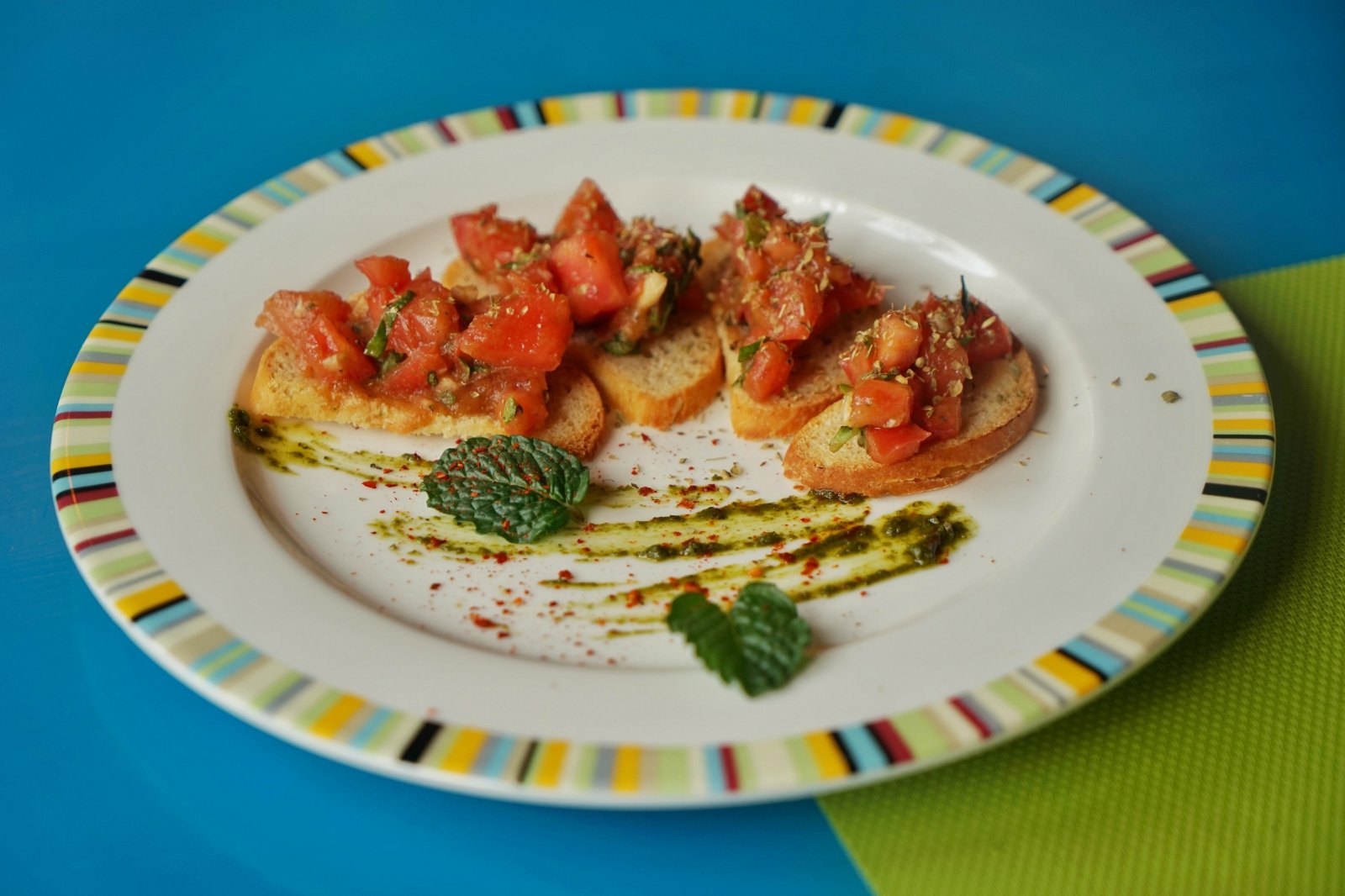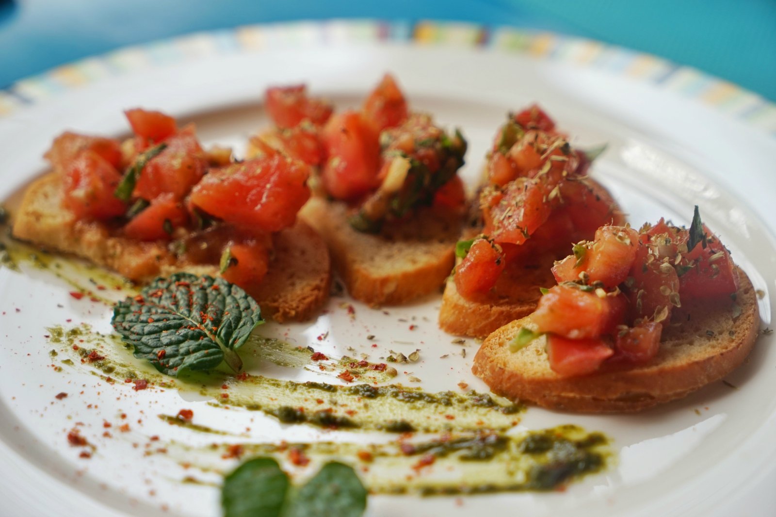 慢工出细活,摆盘确实很用心,有着法式的精致。小块的面包片,番茄生切入块,撒上酱粉,稍加装饰,便端盘上桌。经典的西式口味,面包片干而不硬,口感微脆,番茄入口微酸,酱粉的融入又增添了草木的清爽感,宛若初恋的口感。