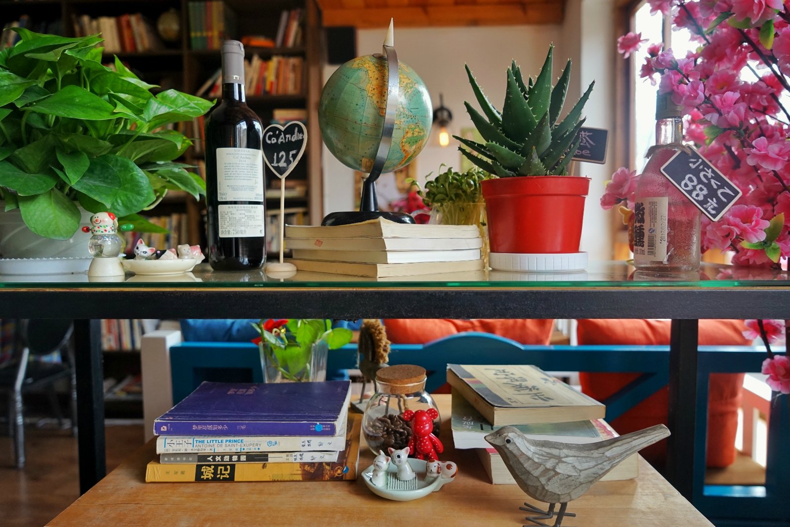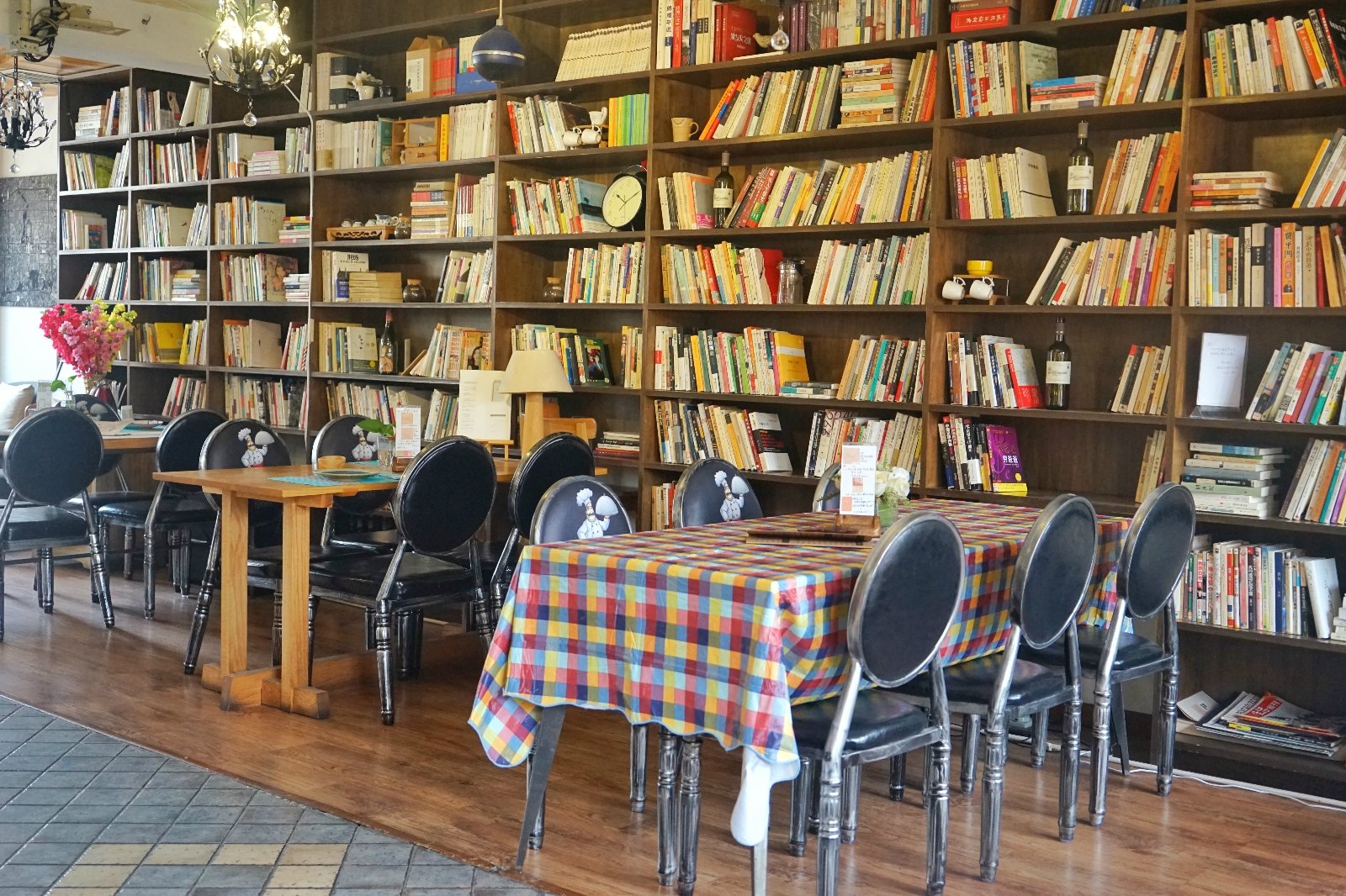 一层落地式玻璃,宽敞明亮,纯白座椅搭配五彩的抱枕,座椅旁便是花园般的植物花语,敞开式厨房,厨师一举一动尽收眼底,食用也比较放心。二层则更加文艺,整靠墙的一大片书柜,书籍涉猎其广,各种风格都可以找到。寻一本书,捧一杯咖啡,窗外的鸟叫入耳,抬眼便是窗外的春夏秋冬,阳光透过窗渗入,温暖舒适,无论一人食还是约三两好友,都很惬意。
