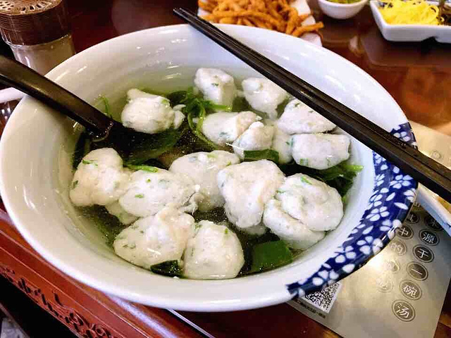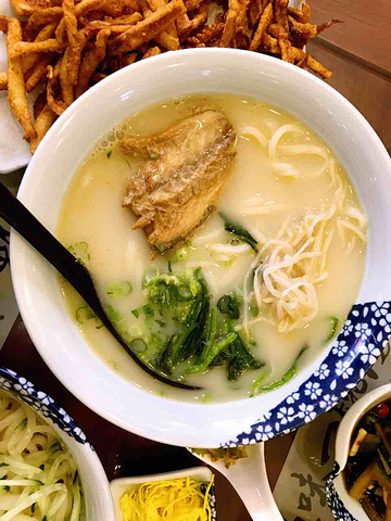 ❤️下次来威尼斯水城玩,还会毫不犹豫选择这里吃饭🍜 ✨ 欧式的外表,店里却是典型的中式风格,太师椅八仙桌; ✨ 店里的招牌渔味一碗汤面🍜,选用的是大西洋无污染的短尾大眼鲷,经过三个小时的熬制,把鱼的鲜美和精华浓缩在一碗汤中!鱼汤鲜香,面条爽弹,爱吃汤面的小伙伴们不要错过😋 ✨ 虾仁海参锅贴,超实惠又好味的一道主食!一份锅贴堆成高高的一盘端上床桌,忍不住惊呼“这么多啊”!每个锅贴都煎到底部金黄酥脆,虾仁和海参馅儿多的挤出锅贴的两边! ✨如果需要点小菜那就推荐她家的唐扬鱿鱼🦑,鲅鱼丸子汤也是推荐的,白白嫩嫩的鲅鱼丸子一点腥味没有,只有鲅鱼的鲜,加上一点胡椒粉鲜美加倍!渔味炸酱面很普通不算特色不推荐点😜 ✨人均5、60块钱就吃得很满意,相对于这里的环境和服务我觉得很超值👍