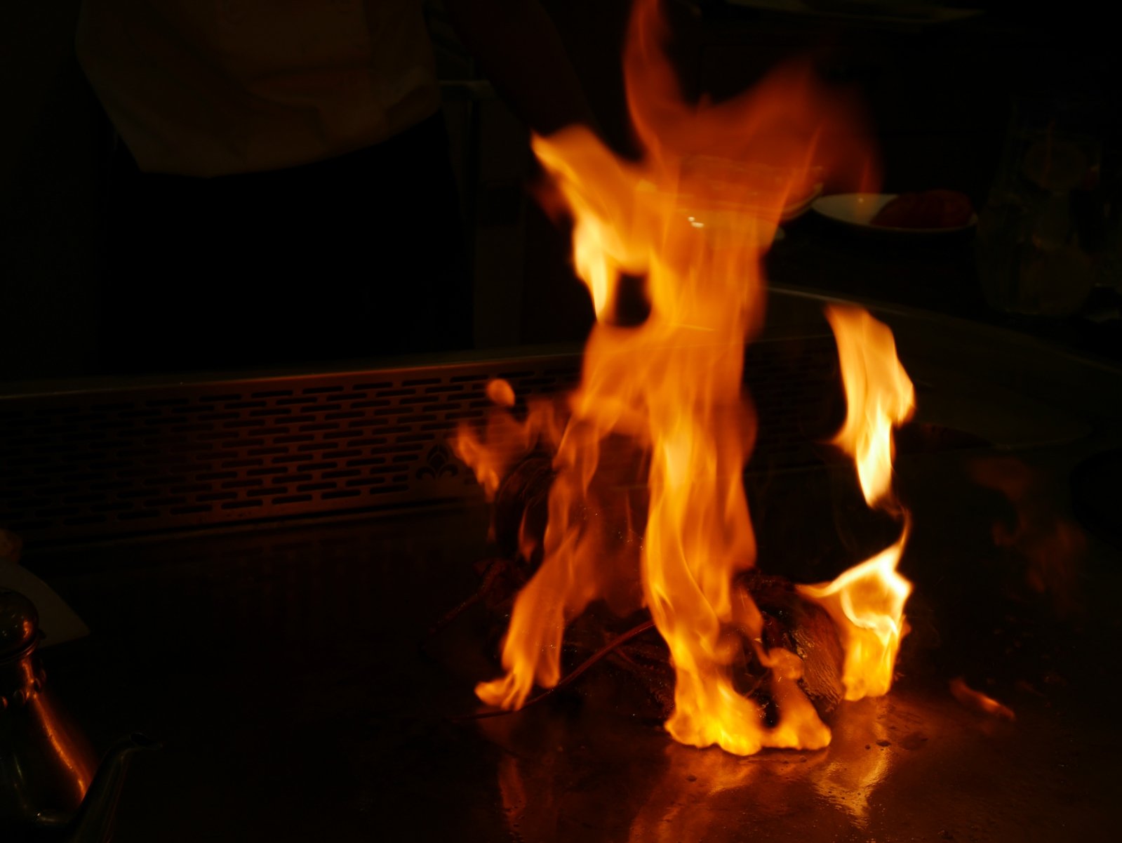 火焰大龙虾,很突然的燃起火焰,吓了一跳