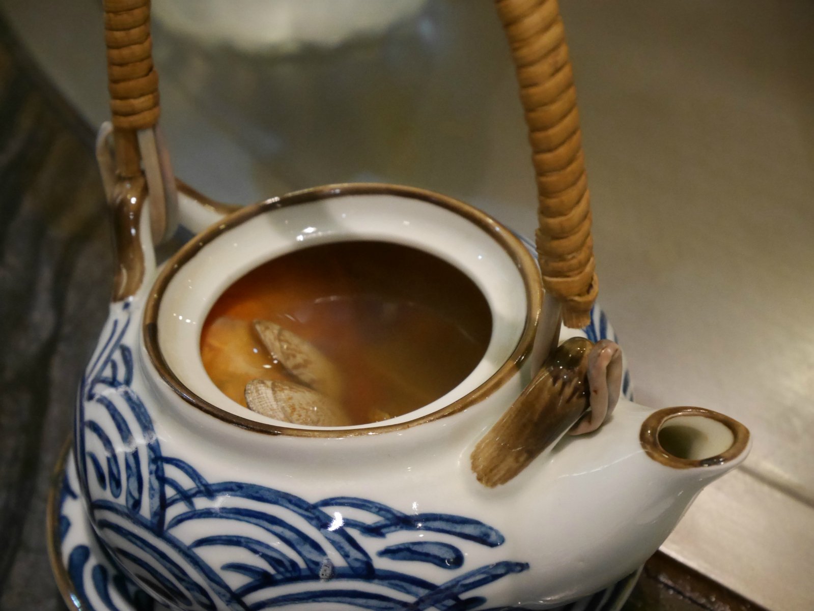 松茸汤,淡淡的酸,很鲜美,餐前喝不错。