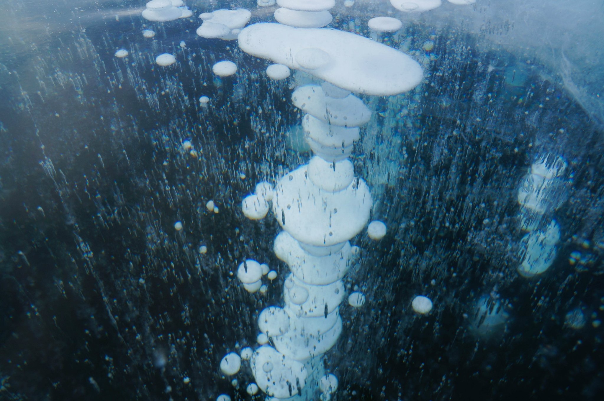 气泡冰,气泡冰部分的冰面基本都被人们的冰爪破坏了,冰面不光洁,但不穿冰爪实在是无法移动