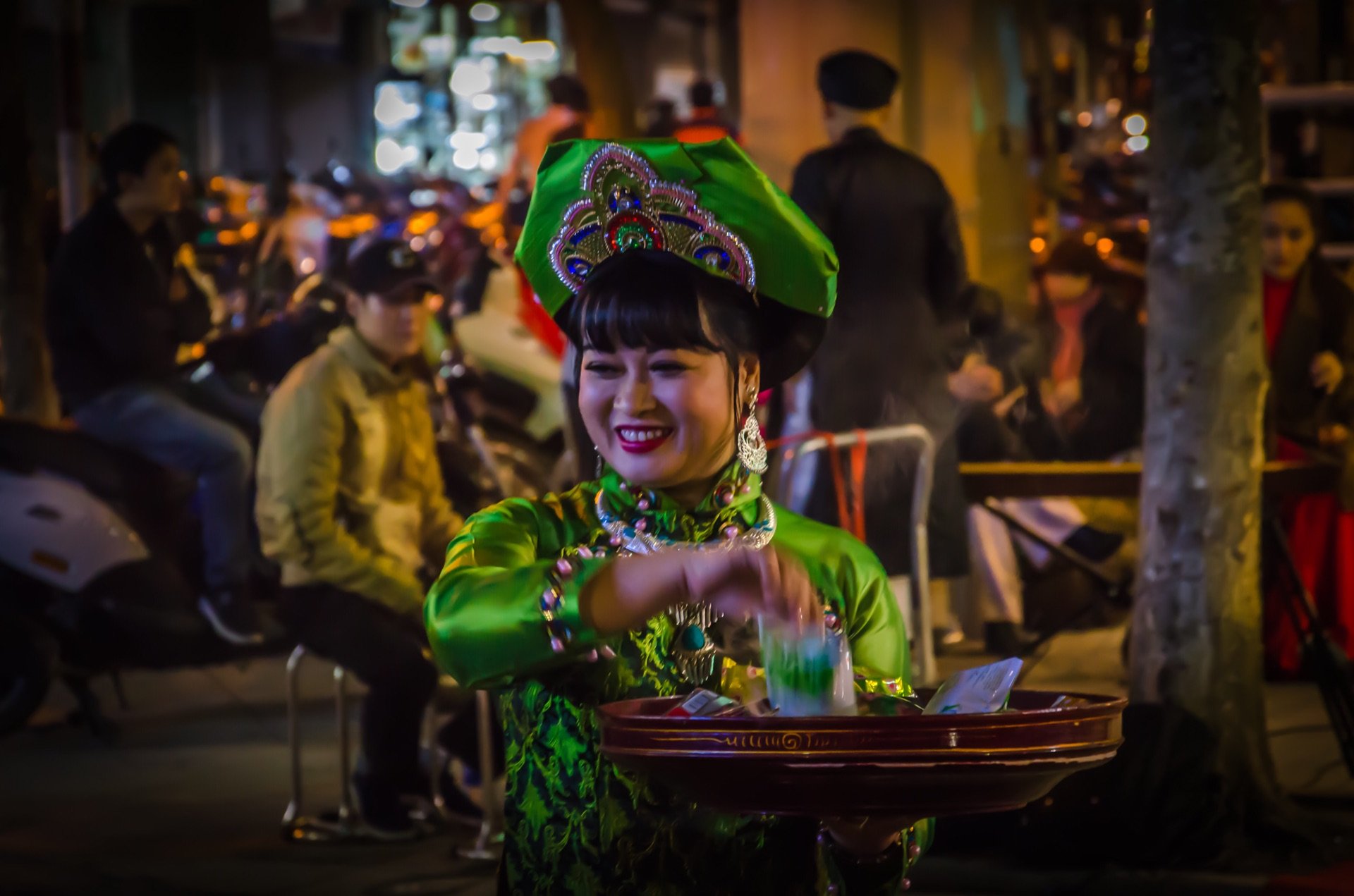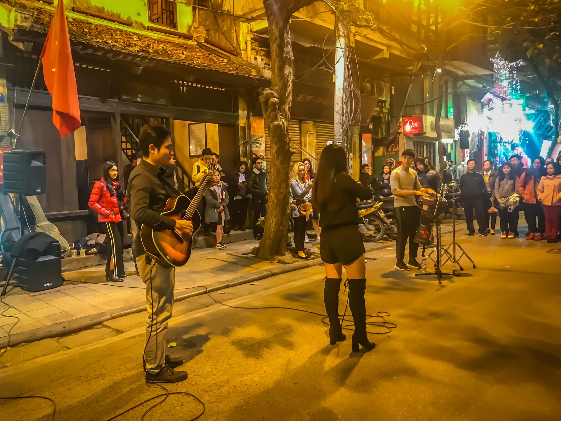 我们其实很好奇他们的收入 打鼓的人打的很开心 很过瘾就想这样听一整夜 还有 越南 特色的小舞台