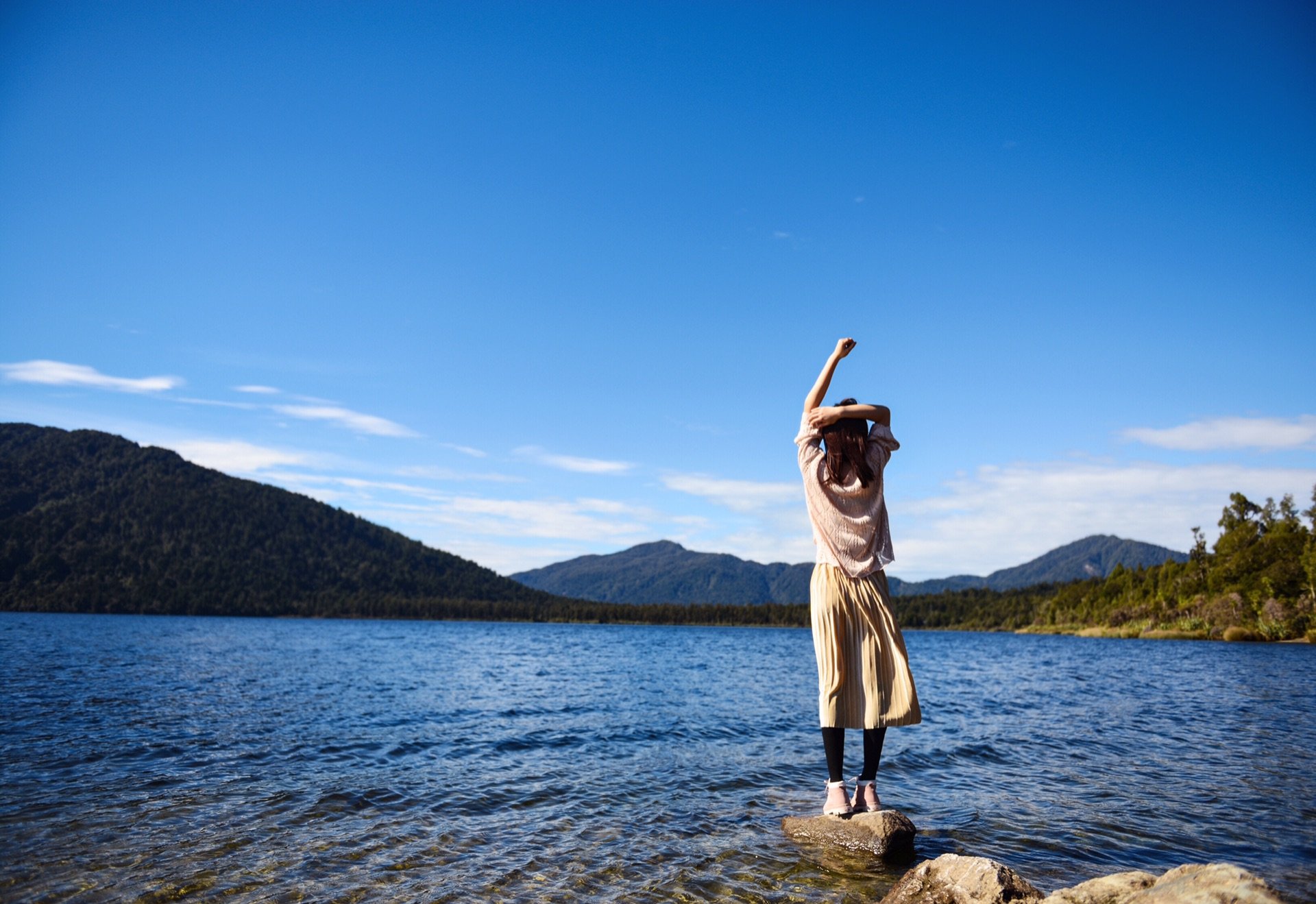 三文鱼农场出门右转十几分钟。这个湖叫Lake Paringa,湖边有坐着晒太阳的老人,湖水也是静静的蓝色,要是昨天的天气像今天这么好,那昨天路过的那么多湖一定还更美。