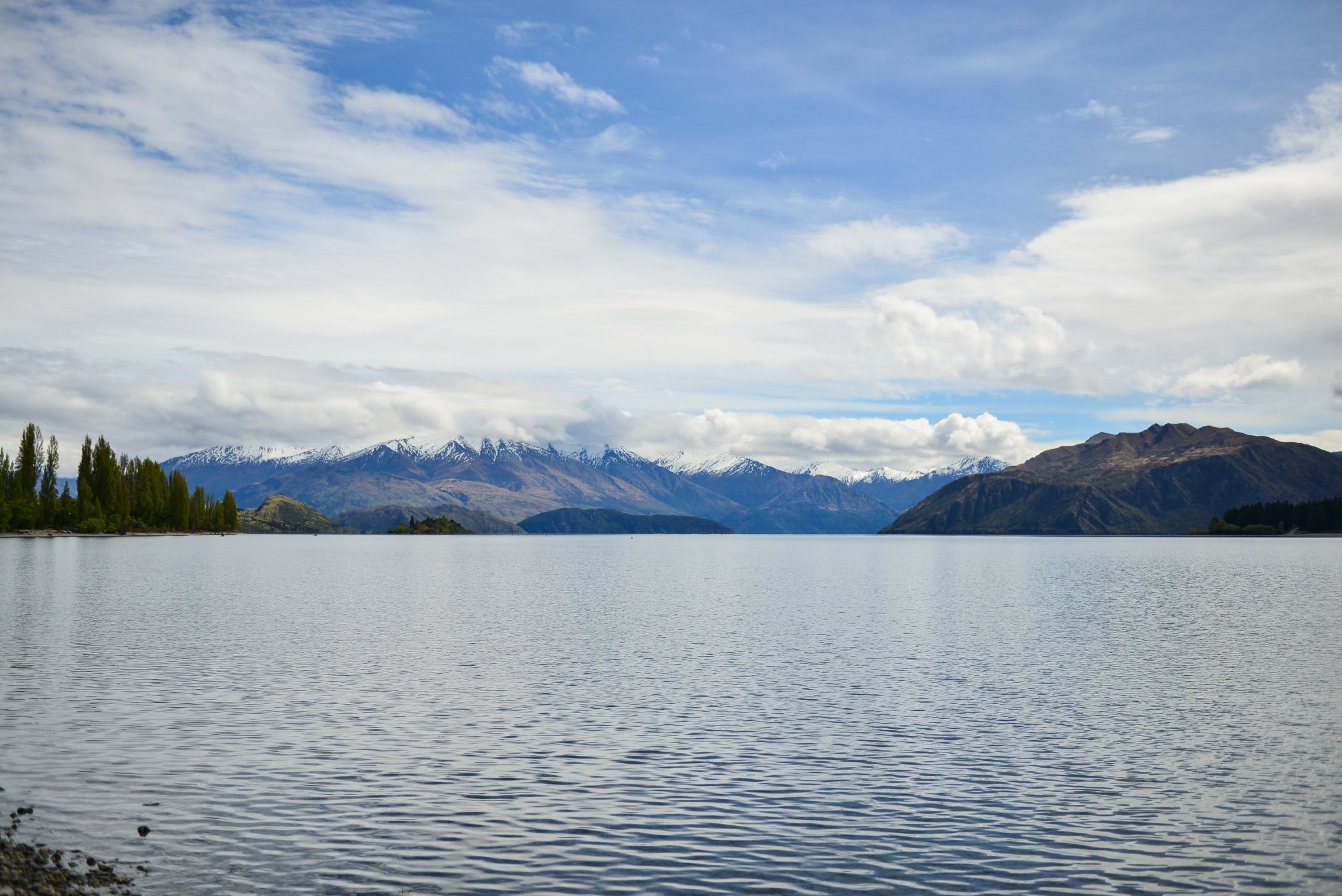 驱车又来到 瓦纳卡 湖边,白天的感觉和昨天傍晚完全不一样,平静的湖面泛起被微风撩起一丝丝波纹。