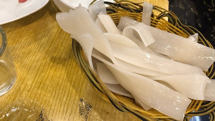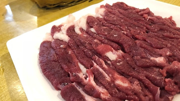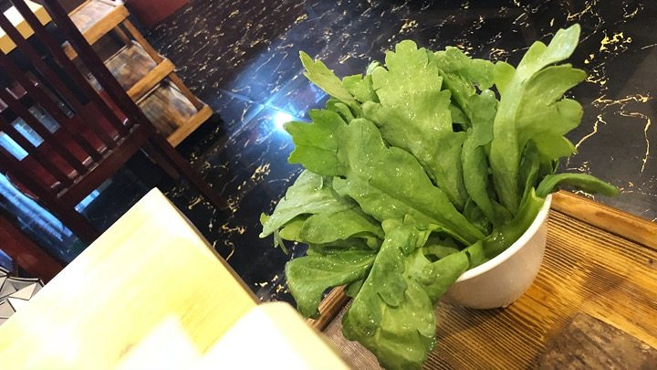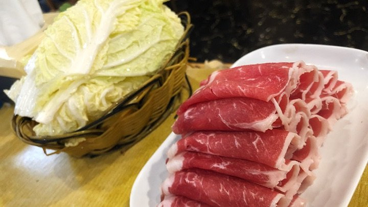「纯手工切羊肉」:手工切羊肉,肉片更厚,需要多涮一下才能熟,但口感很好。[菜品]品质不错;量很足