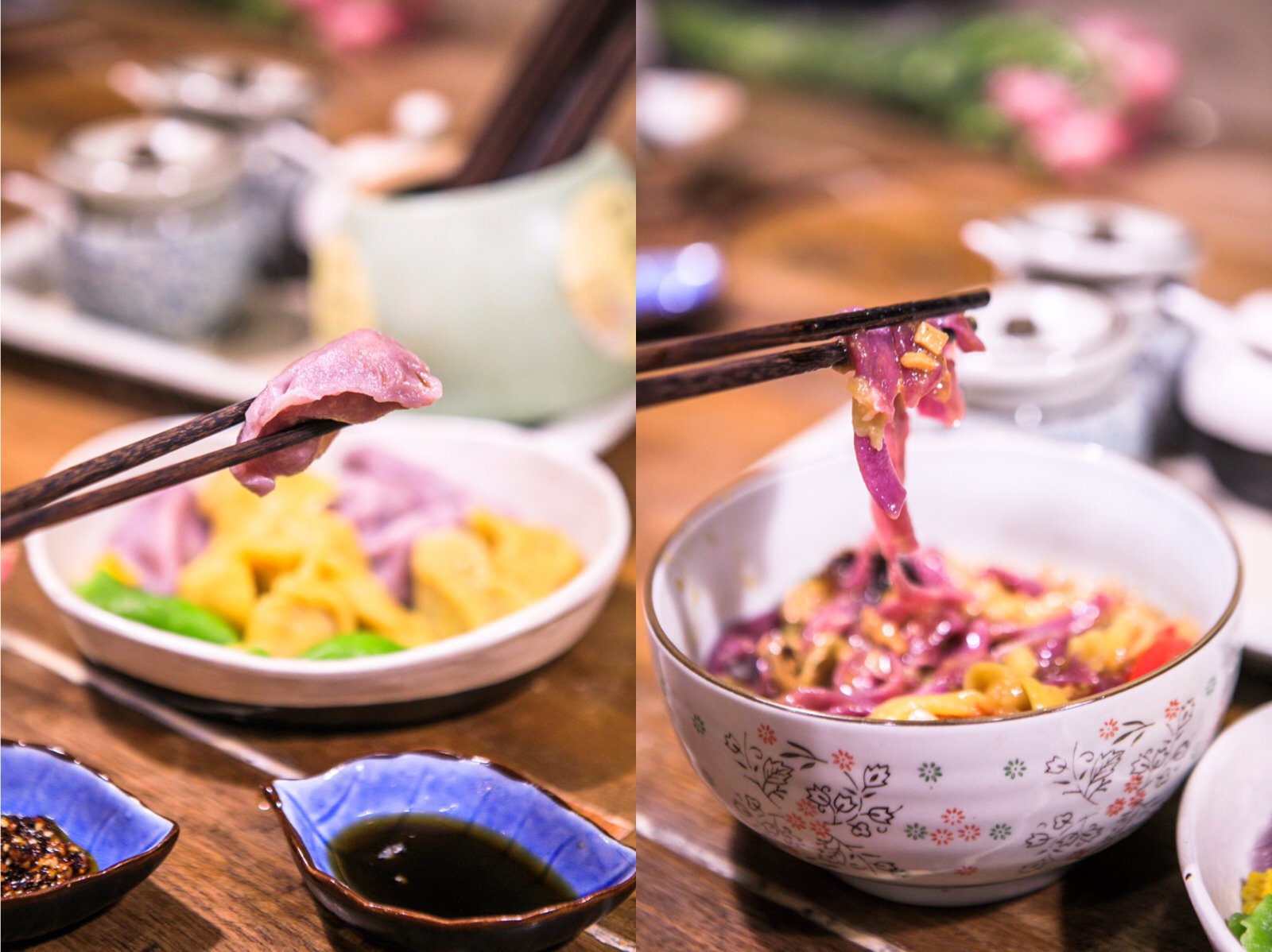 一家小店,一张桌子,只卖素食饺子和面条。饺子是三色饺子,用蔬菜汁的颜色作皮,每种颜色的饺子味道不同,是我吃过最好吃的素饺子。
