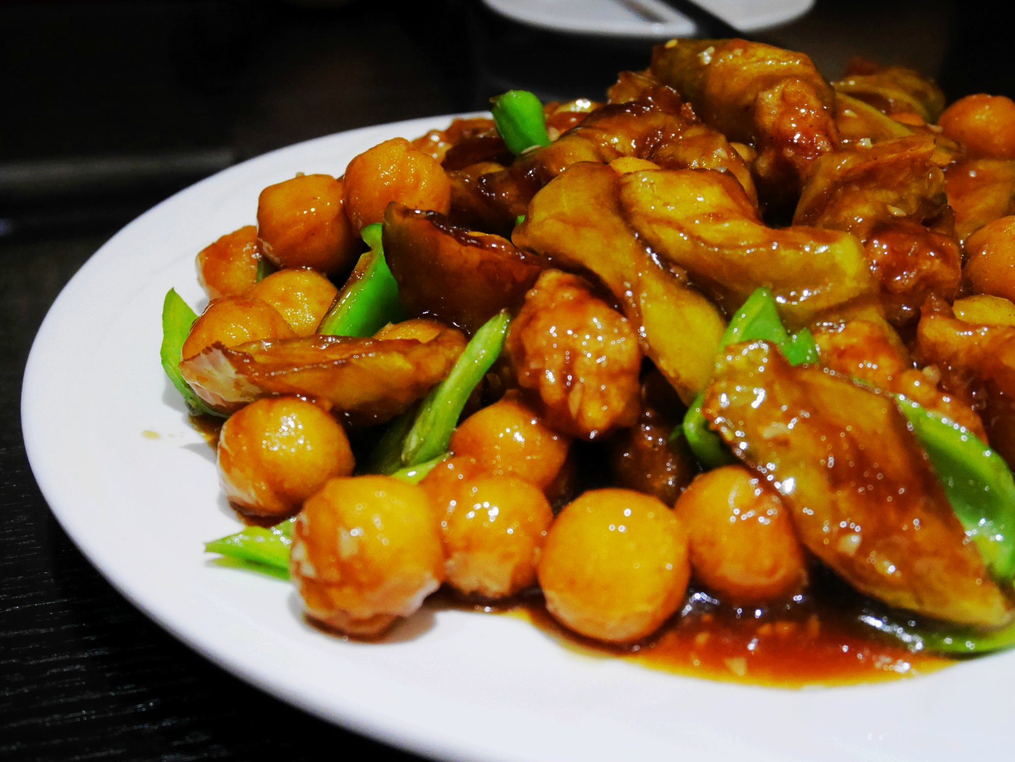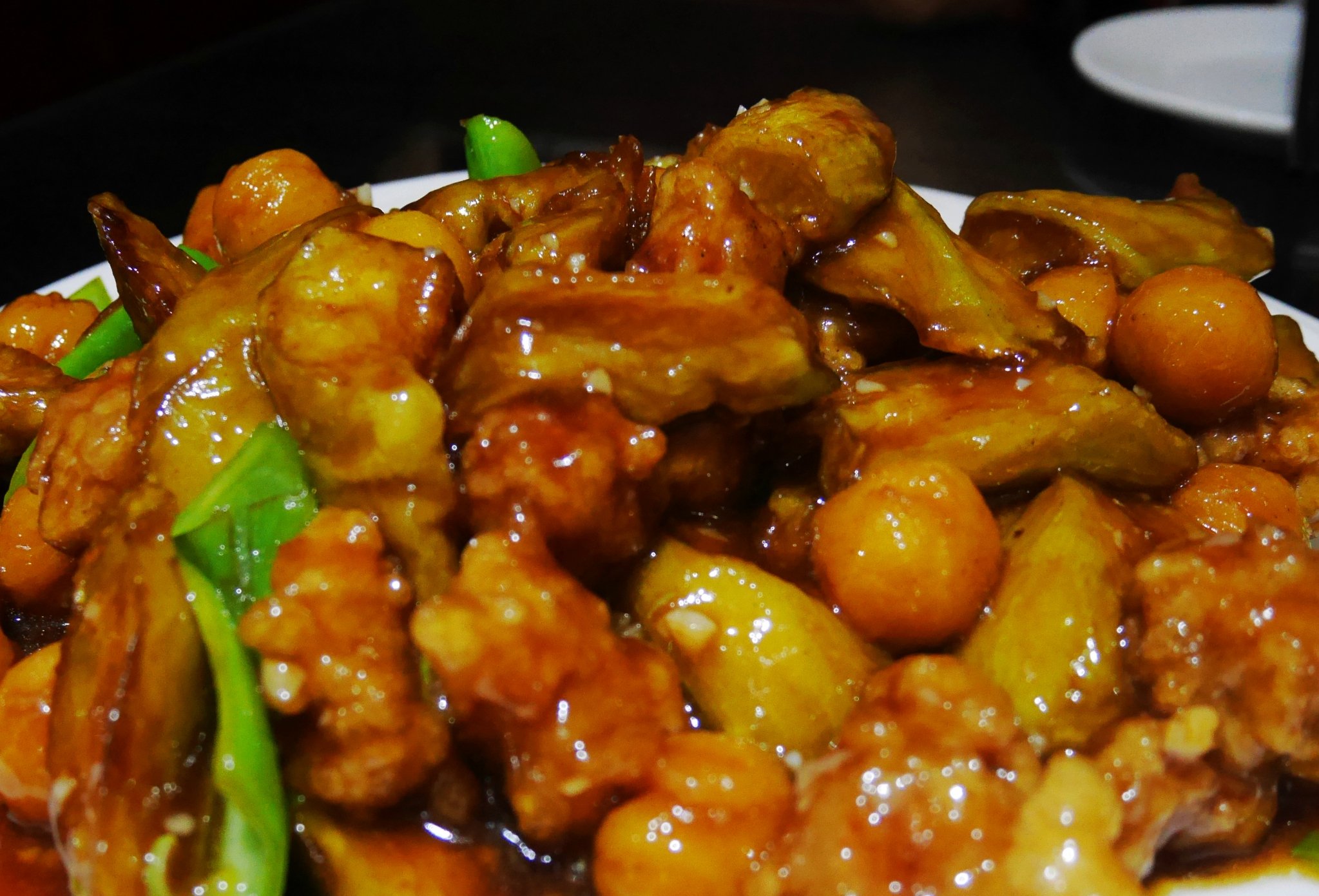 肉段茄子小土豆,土豆是还不错的,刚出锅的时候还有些脆嫩,但是过一会就有点坨,调味还可以,肉段不好吃,口感不好,用了有些嚼劲的猪肉部位,炸的也不脆,淀粉有点多了或者炸的火候不好。就这样两个菜用了40多分钟,等的有点崩溃,催菜的时候店员还抱怨我们没提前问等菜时间,完全没服务可言,整体评分很低。
