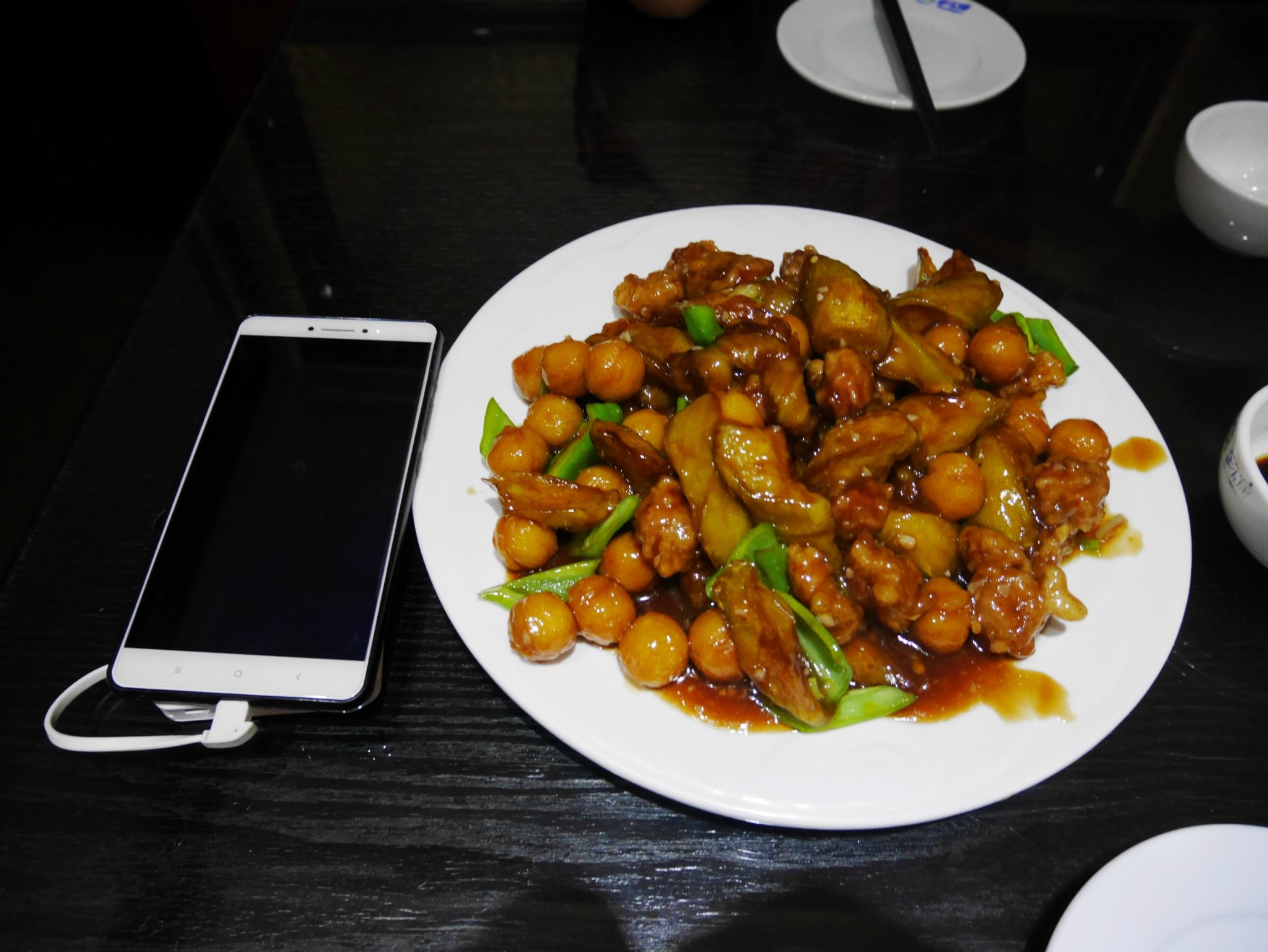 菜码很大,不到30一份,左边是6.4寸手机