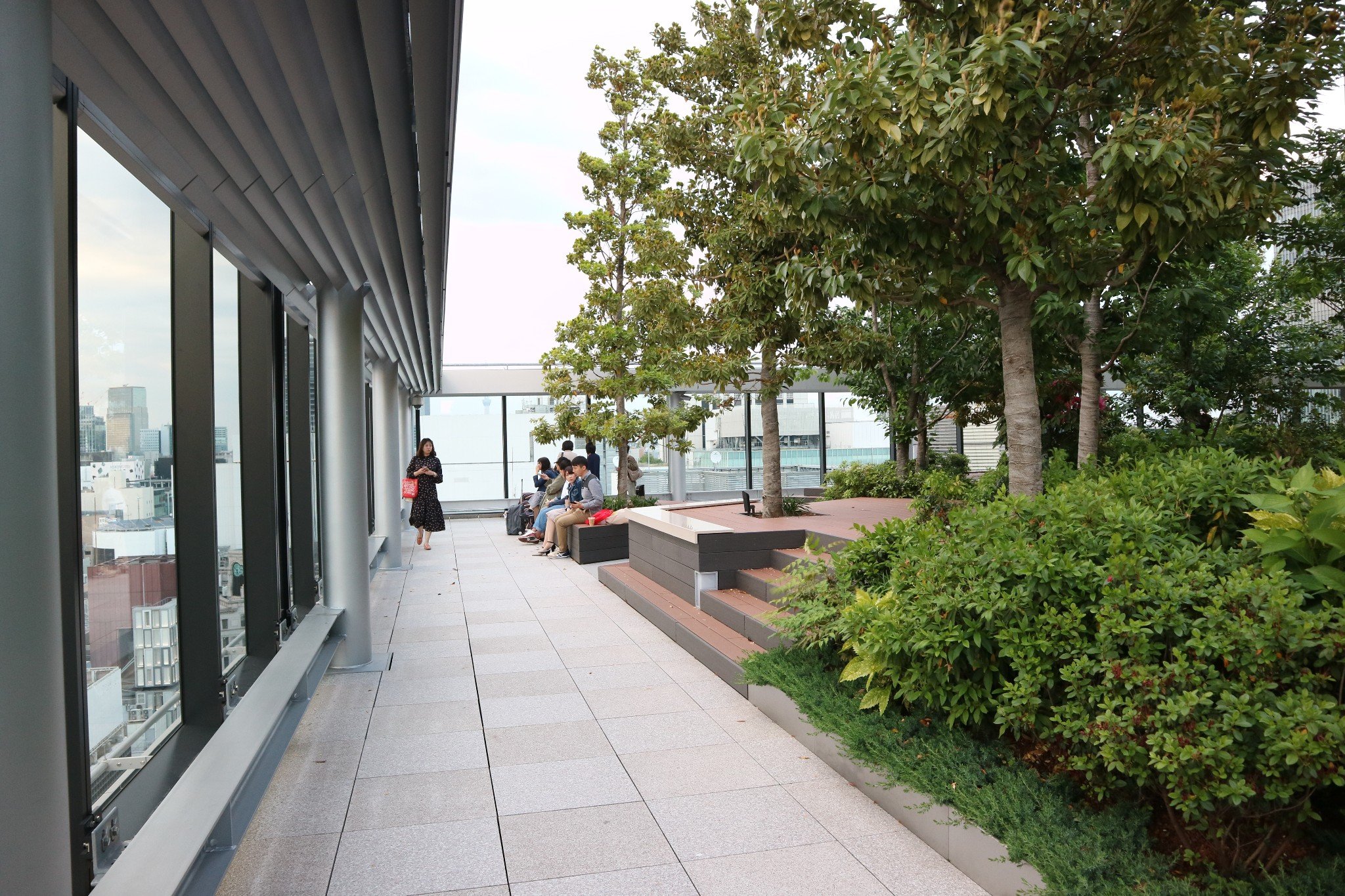 如果想更体验都市里的生态感,那就不要错过位于R(Rooftop)层的Gsix空中花园(Gsix Garden)!Dior在开业之时更在此办了一场走秀。满眼绿植的空中花园被分成森林zone、水盘zone(很凉快)和盆栽zone。比起一楼的拥挤,空中庭院的人相对较少,可以坐着吸氧小憩。