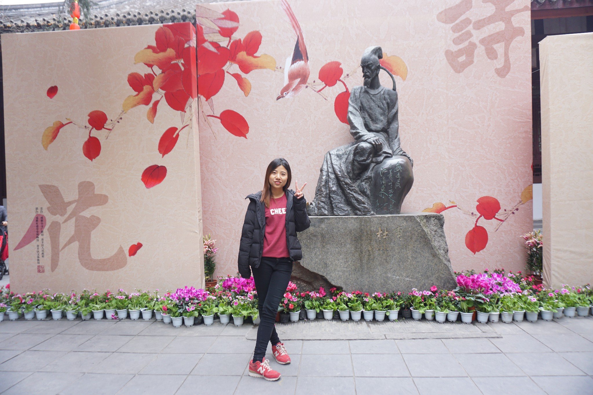 留了唯一一张此行的旅行照,我没有带三角架,所以这已经是妈妈给我拍得唯一能看的照片了,留下我和杜甫的倩影合照,希望在未来的日子里,也能多一些这样的诗意~