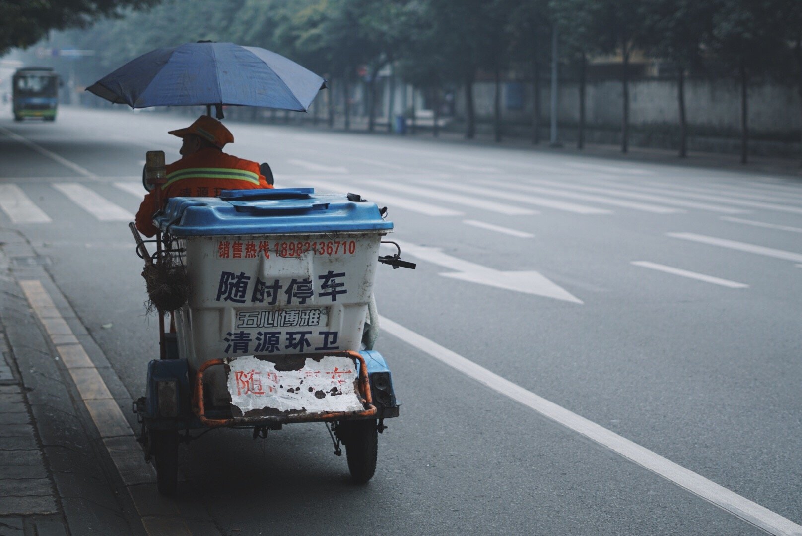 有张照很有意思,当我看见马路上的清洁工人时,顿时来了feel,可是呢,构图啊光线啊就一直没找到合适的角度,然后就追着他跑,妈妈不明白,问:你拍他干嘛,我笑笑,回:就是想拍!