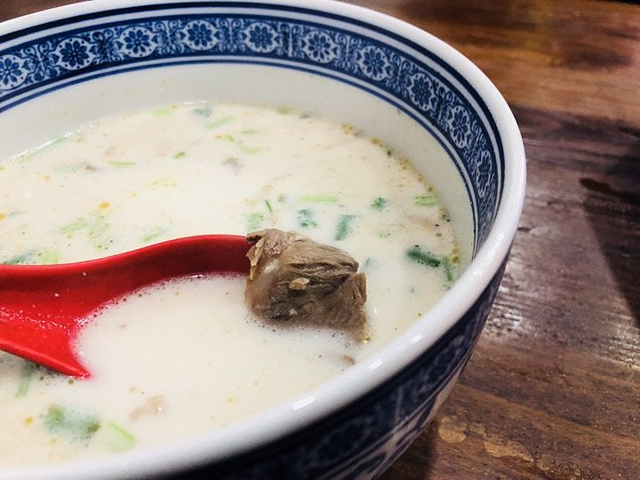 不长的一段时间内去了济南两次,这是后话,可以提前说的是后面那次我会给这家打四分,但是,三月份这次我一定要给五分。 「牛肉烧饼」五分的原因不为别的,就是这口烧饼。选的二十--再少了不过瘾没吃头儿,再多了肉和饼之间微妙口感的平衡会被打破--烧饼外皮酥酥的,内里煊软,特别好。重点是这个肉,老汤久炖,肉汁腴香,脂膏寖入到烧饼瓤里,本来一本正经的酥面皮一下子也温柔了,你侬我侬的就混到一起,饼和肉的结合太甜蜜实在虐狗,你看他俩你也来气,怎么办?你就咬你就嚼,你就可劲的撕碎了它们,麻蛋,怎么这么香! 「羊杂汤」山东羊汤一绝,他家这个更是登峰造极,浓稠的一碗奶汤,入嘴却十分清冽甘甜,如果放些白胡椒,就跟大姑娘化了淡妆似的,更出彩了~ 「芝麻烧饼」羊汤肉多,所以又加了一个烧饼,一锅出来的,味道一样棒。 「免费小咸菜」多放辣椒多放醋,拌一拌,味道就嘭一下子,出来了。 [环境]清真小馆,除了卫生,其它都谈不上。 [服务]大师傅原来介绍两句羊汤和烧饼的故事,服务员年龄普遍偏大,倒也不需要服务什么,这样就很好。 老板娘很有丰韵~