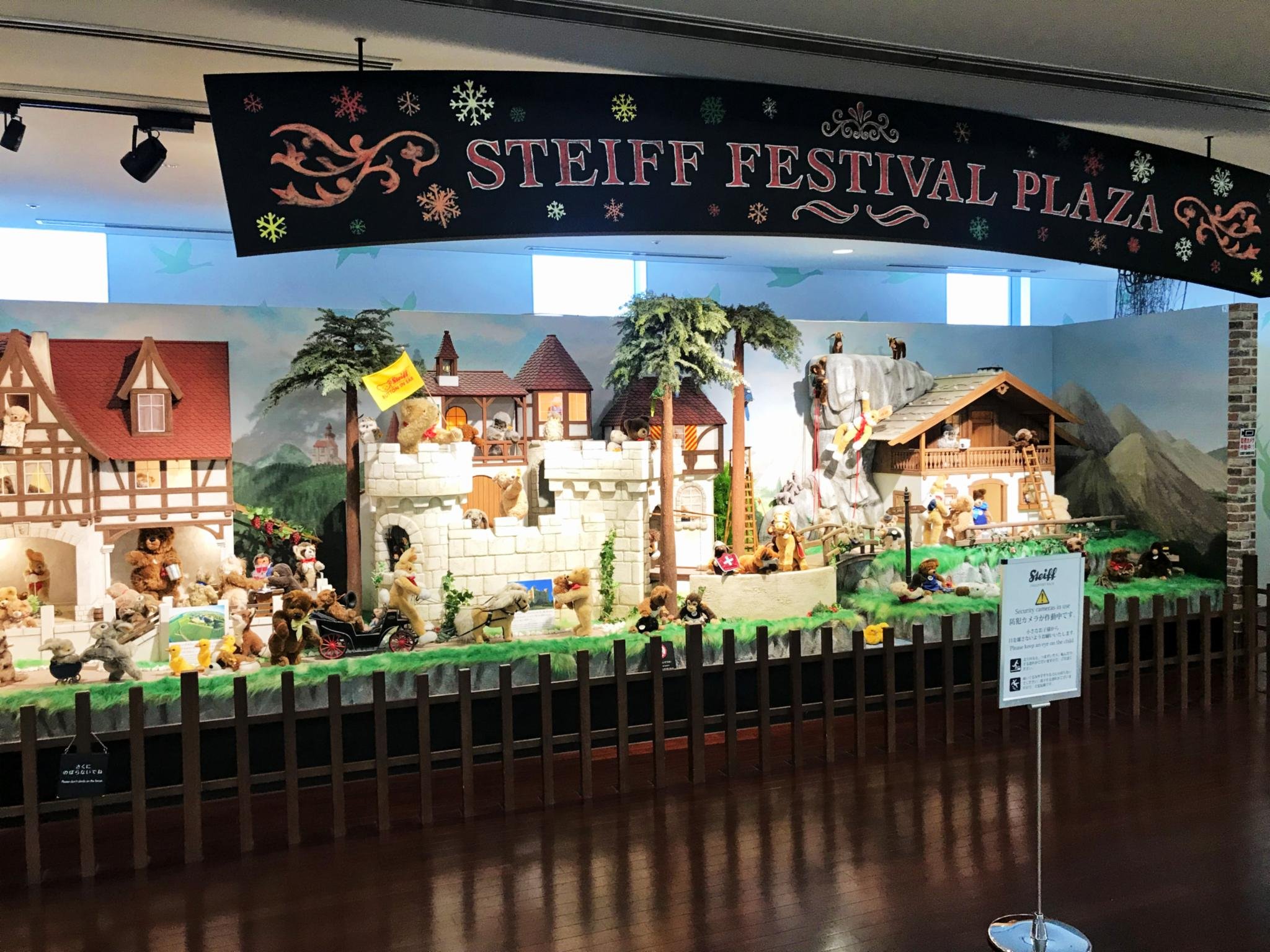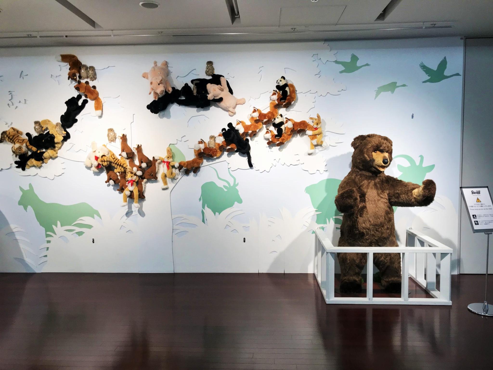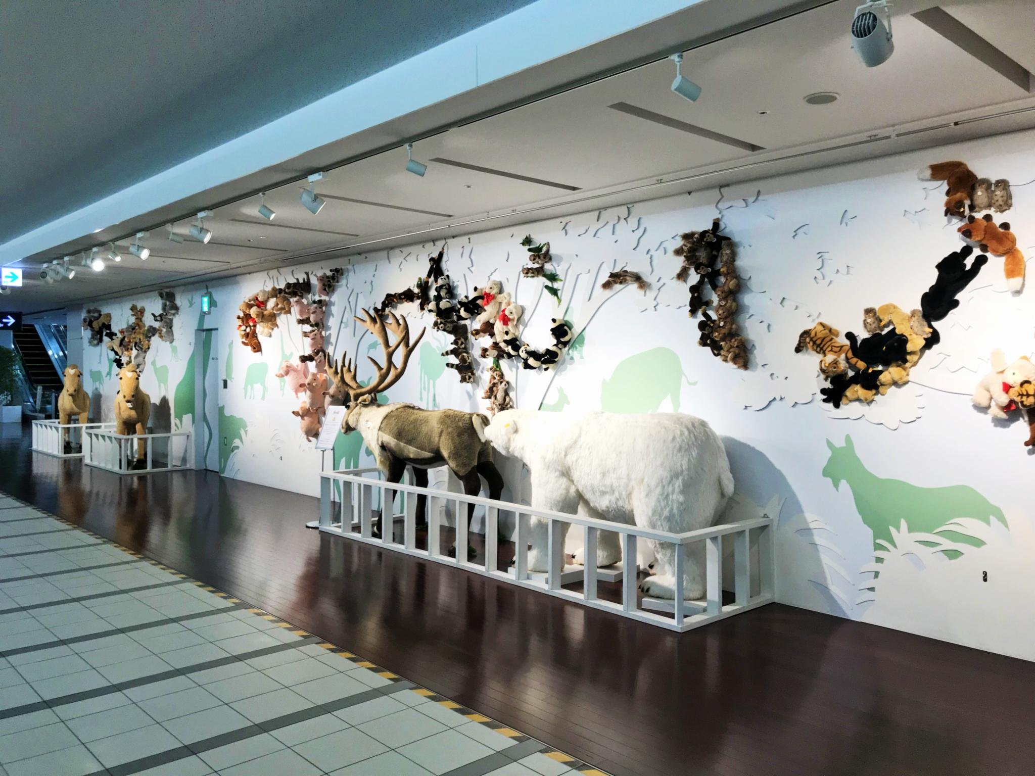 寄送行李完成后,我们就往JR所在的国内航站楼走,这才体会了 新千岁机场 作为日本国内面积第一大机场的地位。连接国际和国内航站楼的走廊二层就是普通通路,两侧有玩具Steiff的广告区,猛地一看还以为是动物园的广告~超可爱。