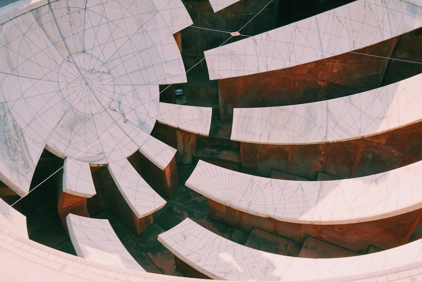 如果没有讲解员,很难了解每一个仪器的测量方式,它们体量庞大,每一个仪器都是一座独特的灰色纹理 大理 石和红砖黄铜建筑,萨 穆拉 日晷世界上最大的石制日晷,是一条27米长的米黄色石阶坡道,这条坡道和地面呈26°55′夹角,同 斋普尔 城的维度一致。顶端的亭子是宣布日食、月食及梅雨到来的地方。随着太阳蔚蓝色的天空中移动,这根巨大的指针也以每秒一毫米的速度在这块印着刻度的半月石头表面爬行。现在这座巨大的日晷依然高高的伫立于此,向世界展示着古 印度 的智慧。