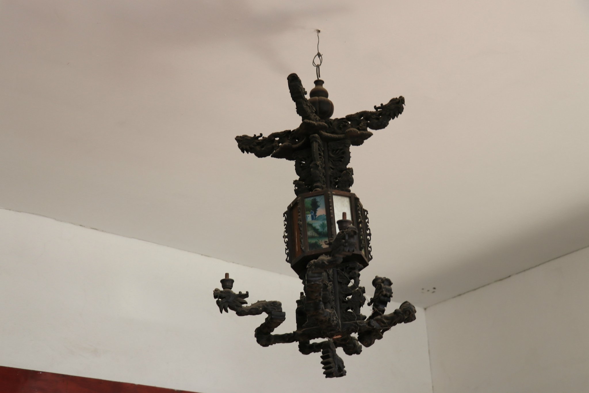 万人球堪称最早的监视器,犀牛望月镜是当年乔家主人的生财镇宅之宝,九龙灯则是慈禧赐的宝物,在南面中间的院内。