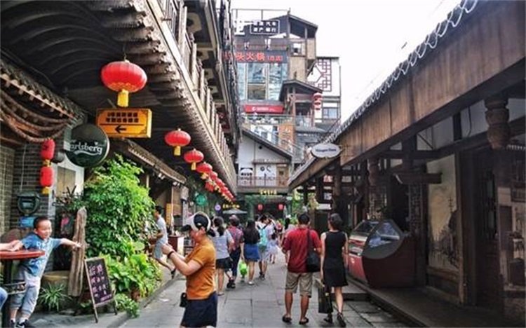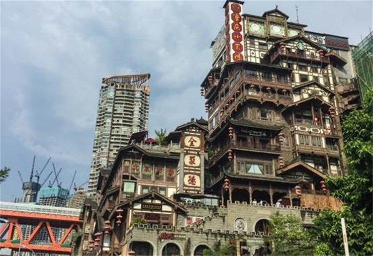 白天的洪崖洞看起来就是一条仿古街,吊脚楼很美,但还不足以让人震撼,逛过了白天的洪崖洞,我们决定先去观音桥的各大商场逛逛,看看有没有打折的商品,顺便吃点东西,然后晚上再来洪崖洞。