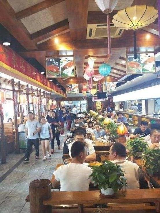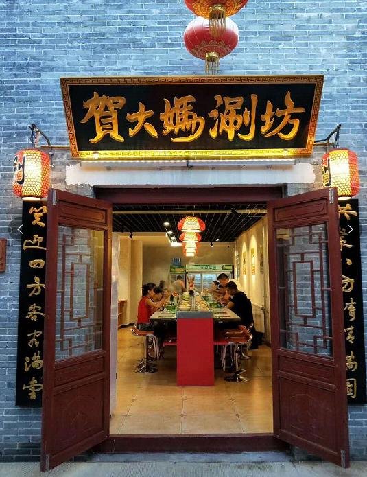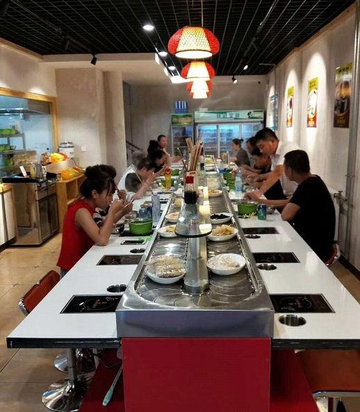 下午去了康镇,感受大漠草原中的都市风情。康镇有小吃街,我们大概吃了一点,可能全国的小吃街吃食都是差不多的,完全没有引起我这个吃货的兴趣,最后我们选择了一个小火锅,贺大妈涮坊,(不知道贺在内蒙是个大姓吗,昨天的饭店也是姓贺,哈哈),门脸很有北京的感觉,里面别有洞天,合理的运用了旋转寿司的原理,每人一个小锅,羊肉、肥牛都非常的新鲜,菜品也是干净新鲜。