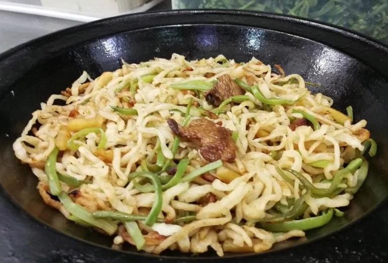 铁锅焖面是必点菜,面条劲道麦香味十足,咸香中弥漫着一丝清甜,极富弹性的面条在香气里穿梭,唇齿生香。