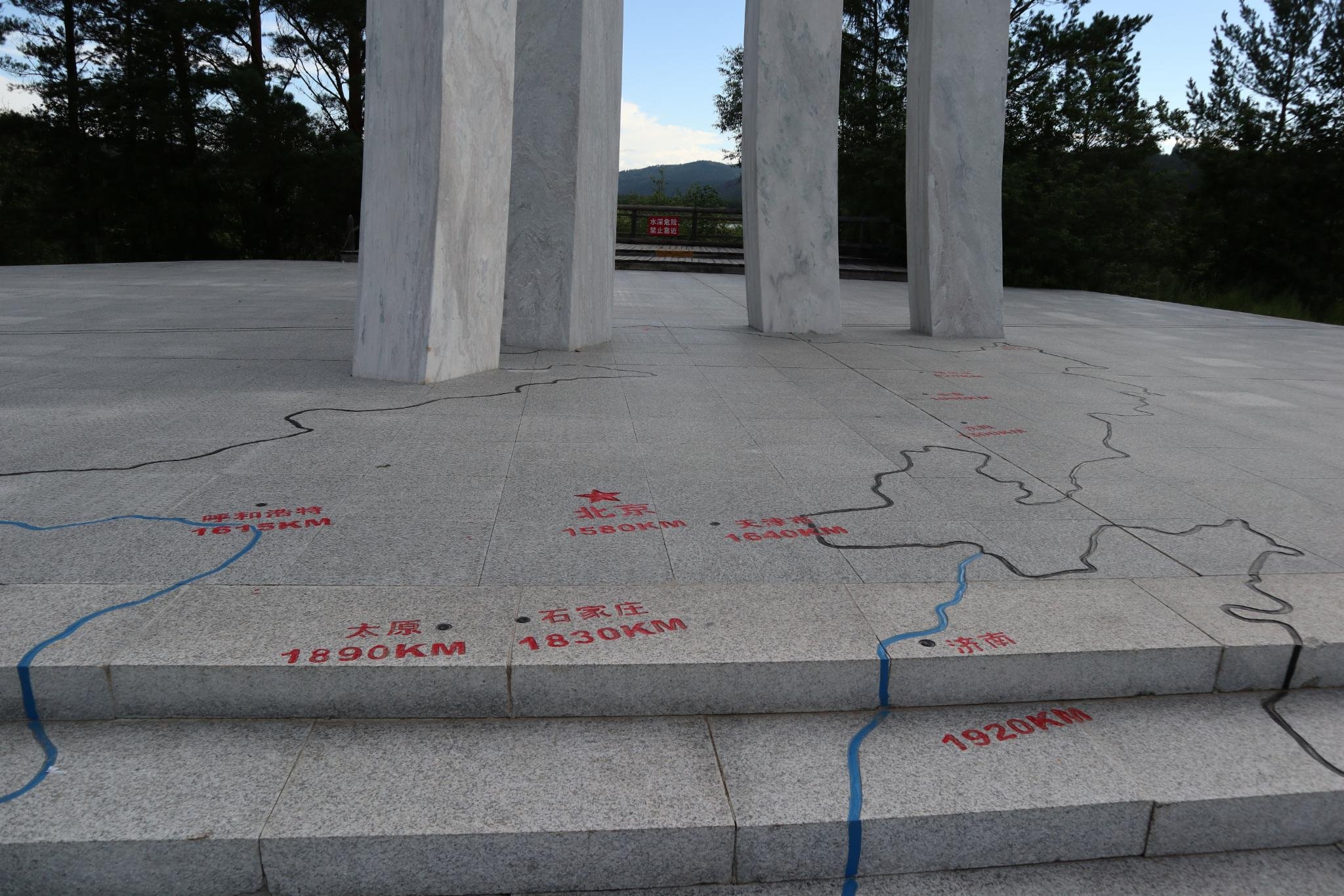 雕塑基座上是中国地图,刻有北极村至全国各主要城市的直线距离。