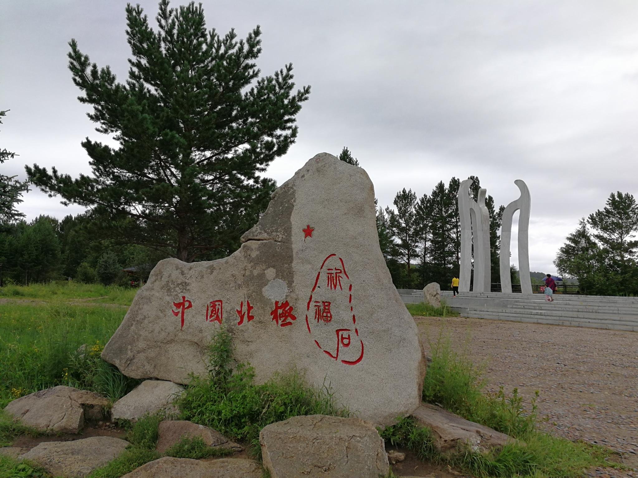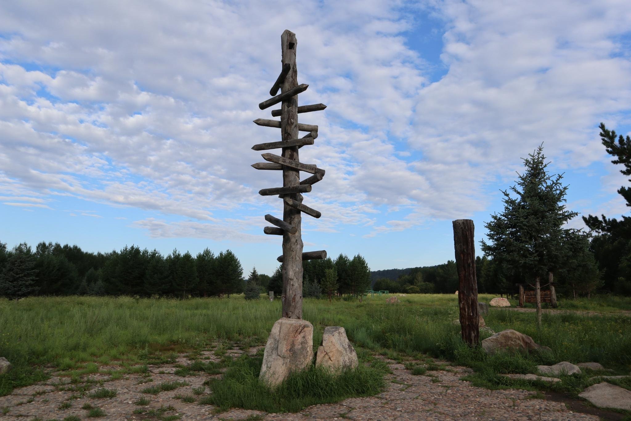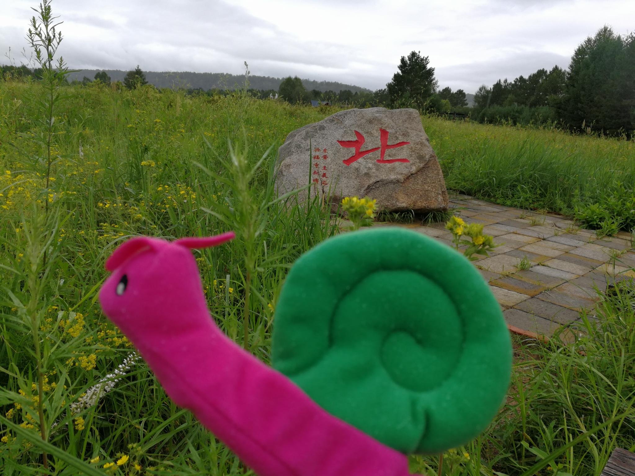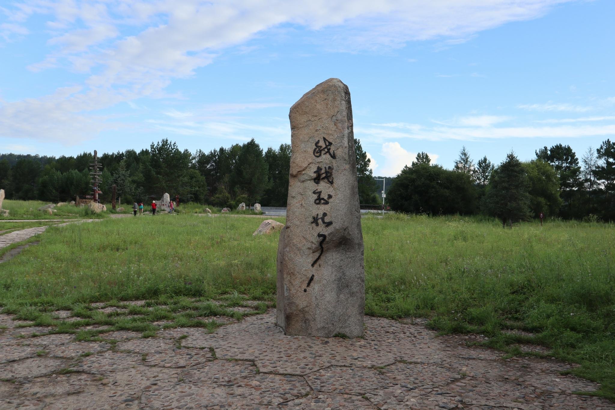走到这里时10点,下起了小雨。这是朋友早晨起来拍的,看了一下拍摄时间是6:10。好几天都是早晨大太阳白天阴天。要不是因为出来找北,我难受的不愿意动,在这里拍了游客照,感觉快要把石碑靠倒了