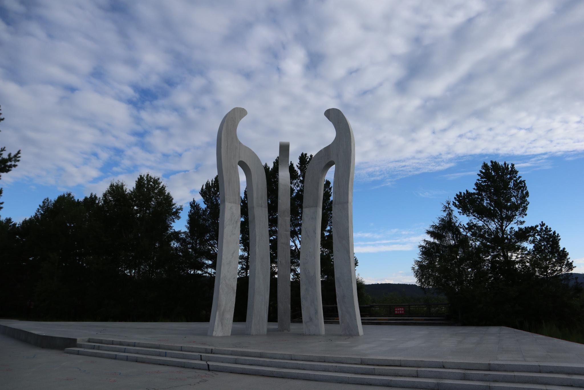 中国北极标志制作得很有特色,实际上是三个北字的半边,雕塑高11.8米,从中心呈120度角散射排列,所以从哪个角度看都是北字,分别象征着北方凝重厚沉的历史文化、地域文化和民俗文化,