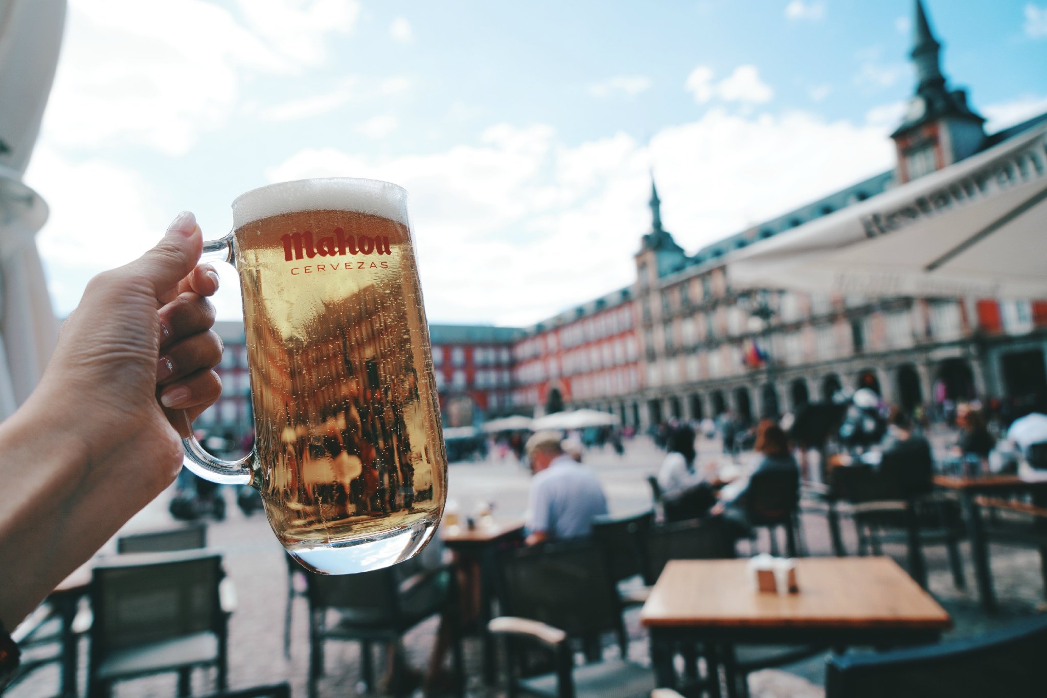 在马 约尔 广场,阳光下的啤酒来一杯。