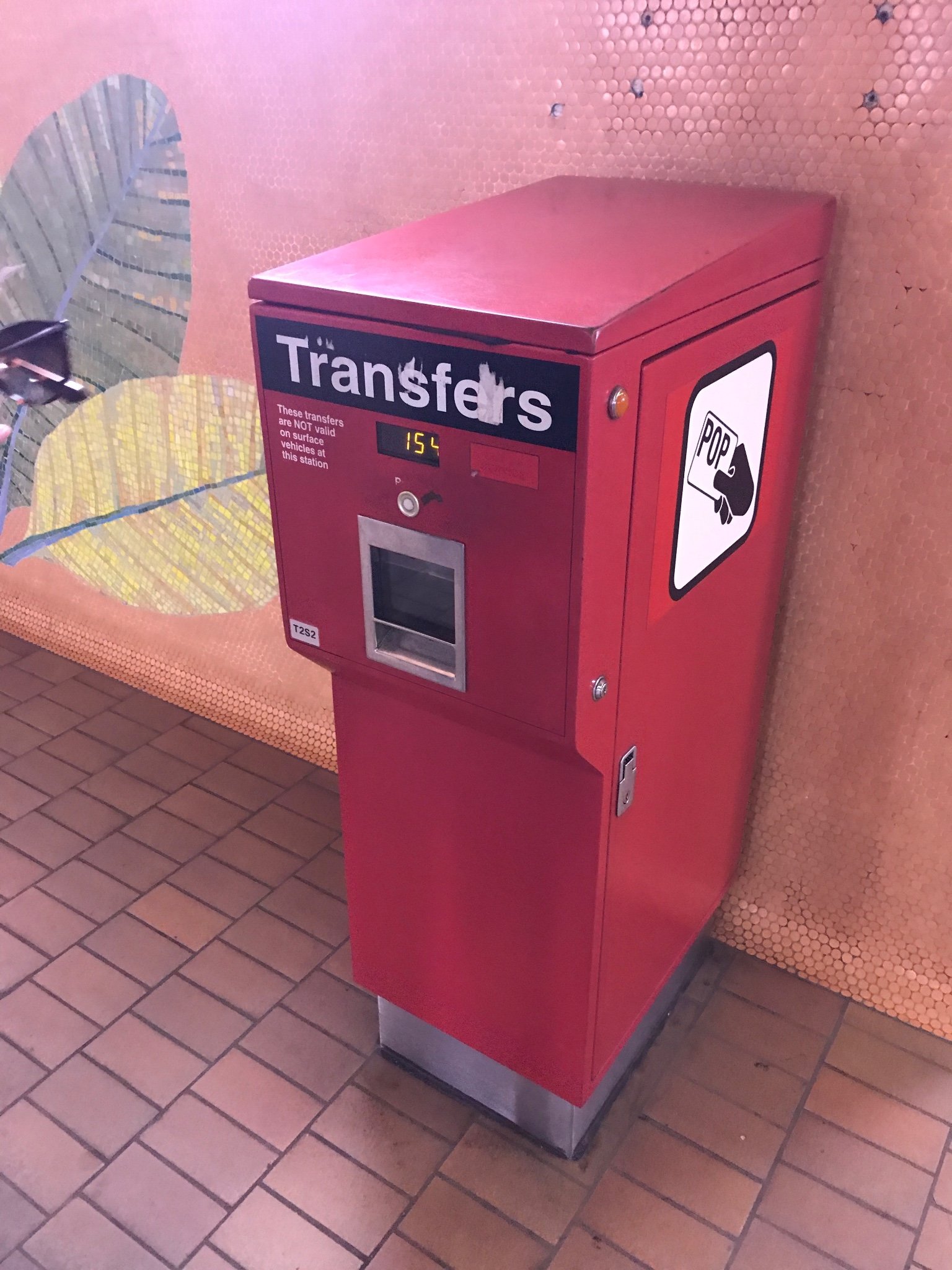 地铁站内买票进入后,会看到这样一个红色的箱子,按下按钮,会吐出一张纸,