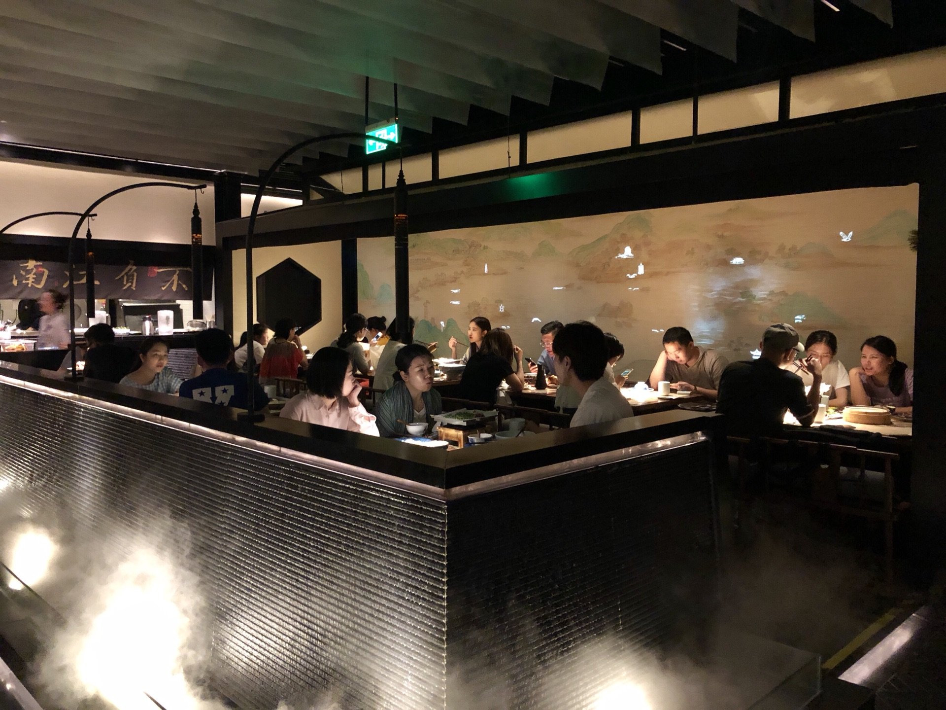 环境: 江南 气息,宛如西湖的水中央,干冰挥发出的雾气,很诗意。餐厅的灯光很慵懒