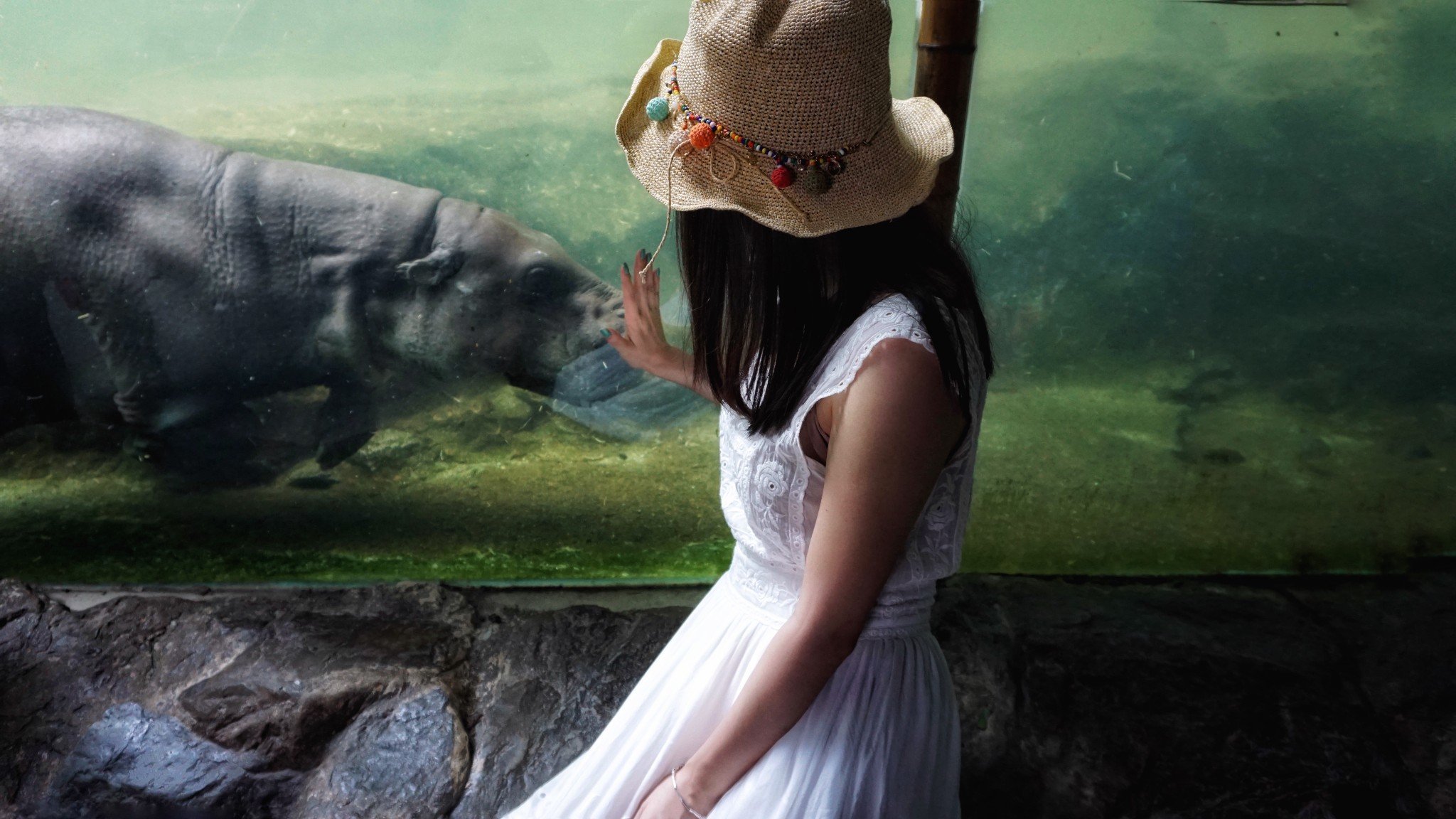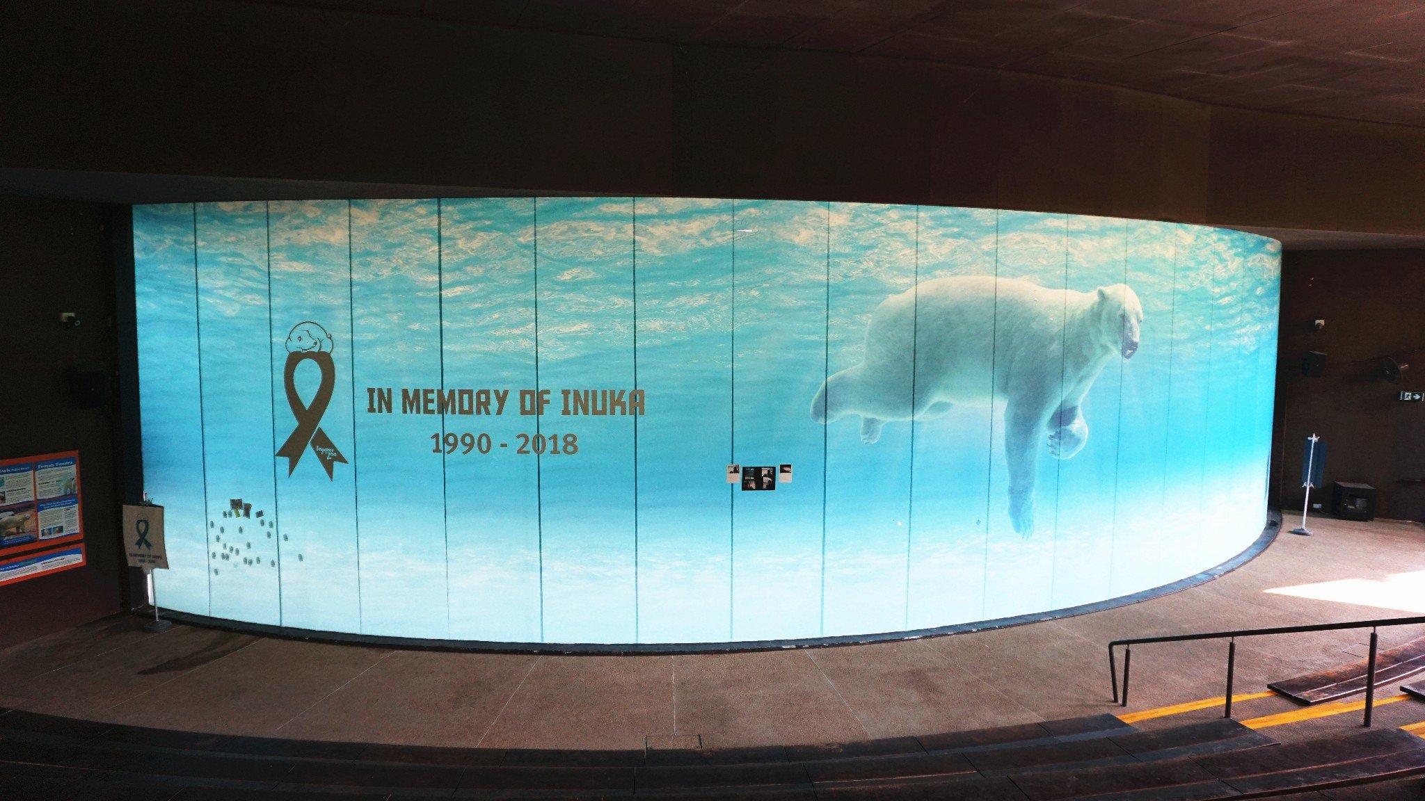 大大的弧形玻璃缸上是INUKA曾经在这里生活的大幅照片。“In Memory of INUKA,1990-2018”。