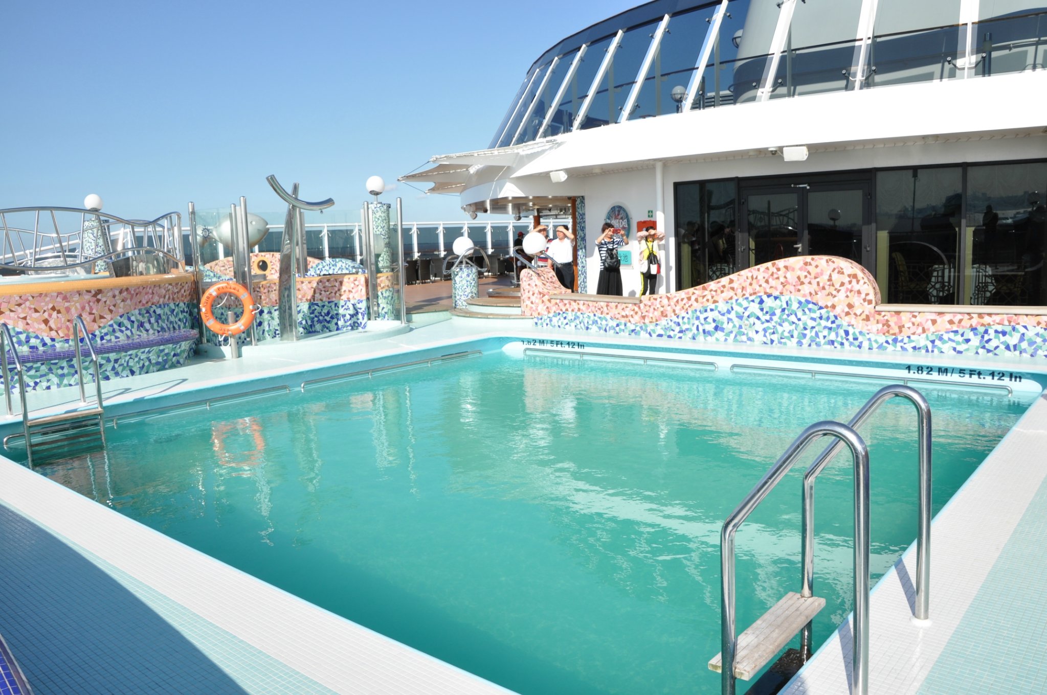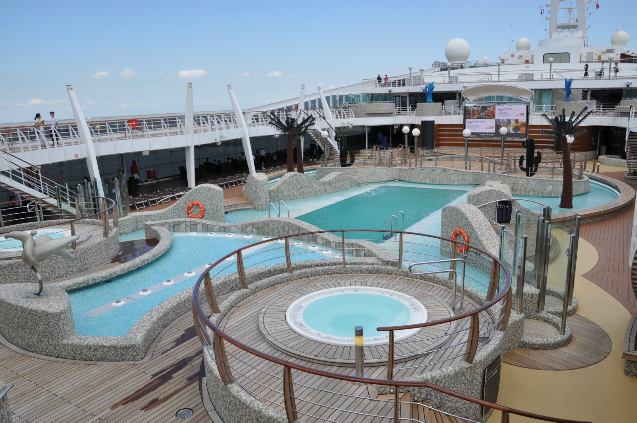 船尾泳池,这是我们头顶上的泳池,也是我最喜欢的地方。因为阳光好人少。