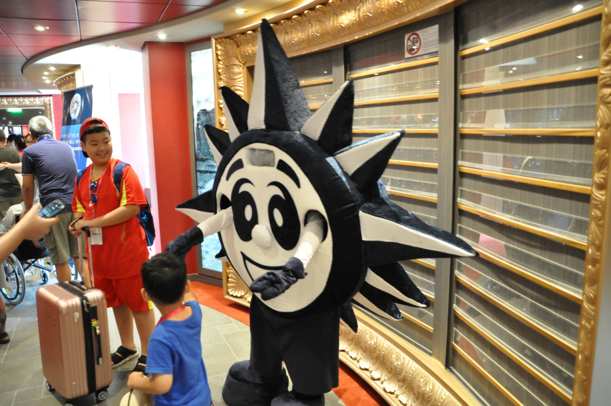 提前两天从家里出发,提前一天到达上海,在上海玩了一下。18号中午我们就打车去了吴淞口国际邮轮码头。一下车帐篷里人满为患,我们以为会等很久,结果找到导游之后几分钟就顺利完成了行李托运和注意事项的说明。接下来就是安检登船。由于我们去的时候是登船比较集中的时候,所以还是等待了一会。不过一切都是有序进行的,并没有觉得很难受。为了让乘客从容登船行李都是有他们的员工帮忙运送到房间门口的。简而言之就是五星级酒店的入驻流程。