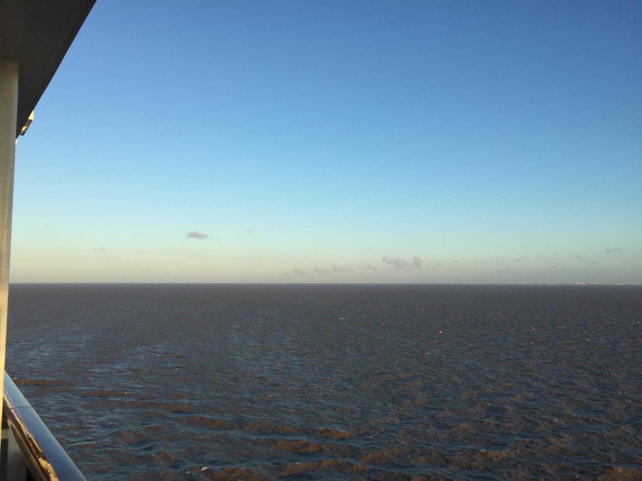 从我们的船舱拍出去的景色,此时已经暮色深沉,长江入海口的泥沙依旧,一点也没有大海蓝色的样子。差不多肚子也饿了是不是该去找点吃的了?