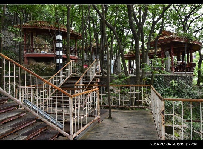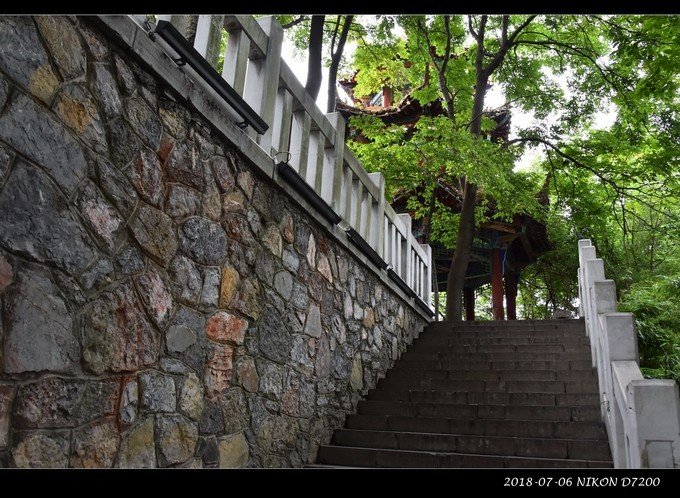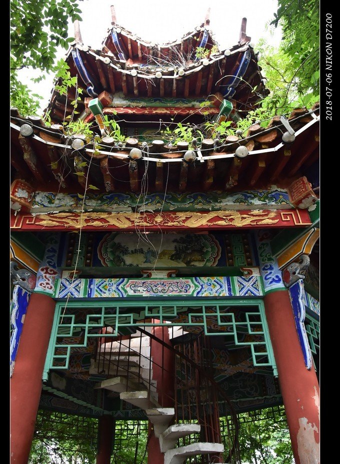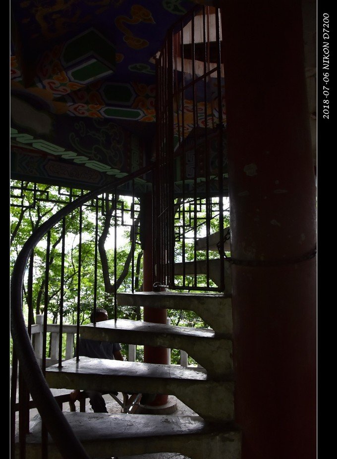 我循着台阶一路上行,一直爬到不高的山顶,山顶上有个亭子,不过登亭的旋转楼梯也被封闭了。