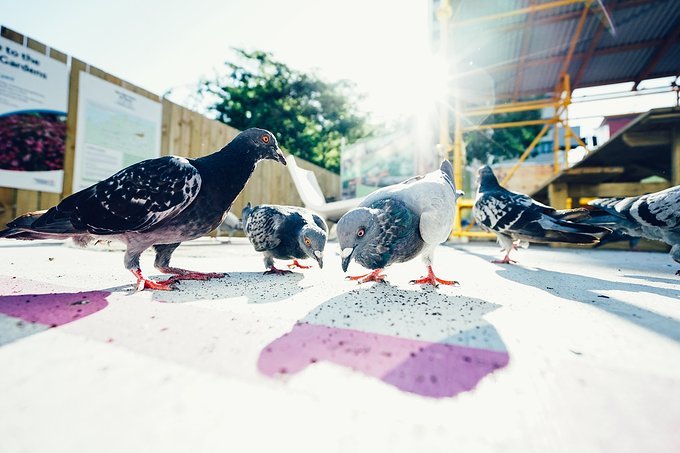 这里的鸽子都不怕人的,争相抢着啄食谷物。