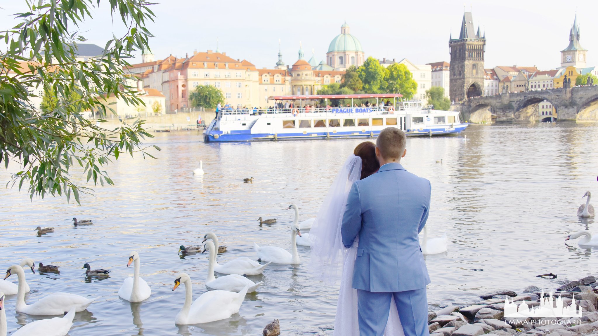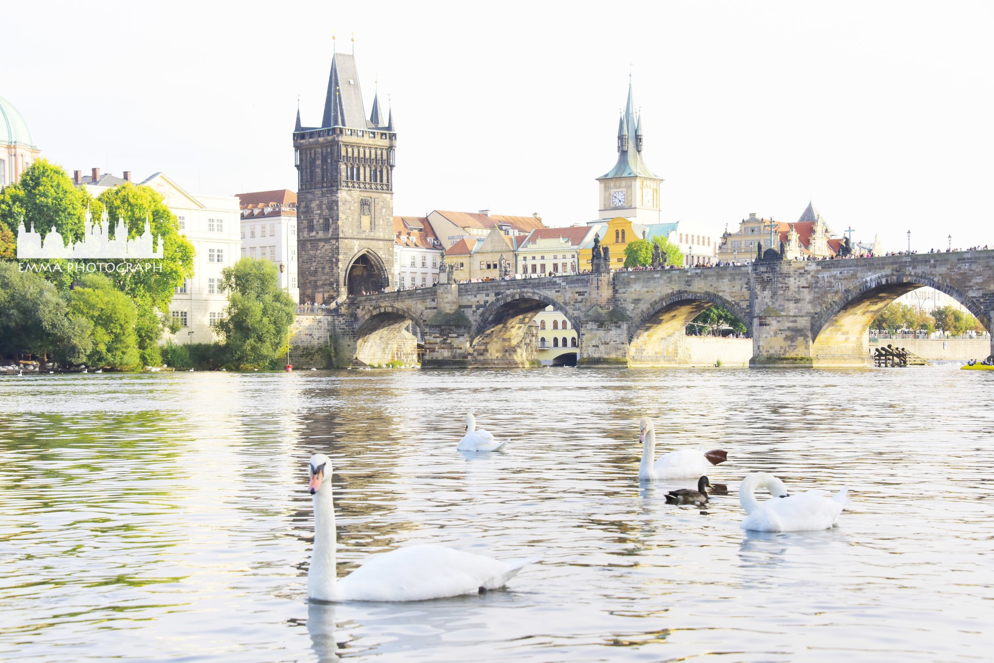 ...,纯白的天鹅配上背后的查理大桥和 布拉格 老城的景色,以及波光粼粼的水面,真的是绝美的一副油画