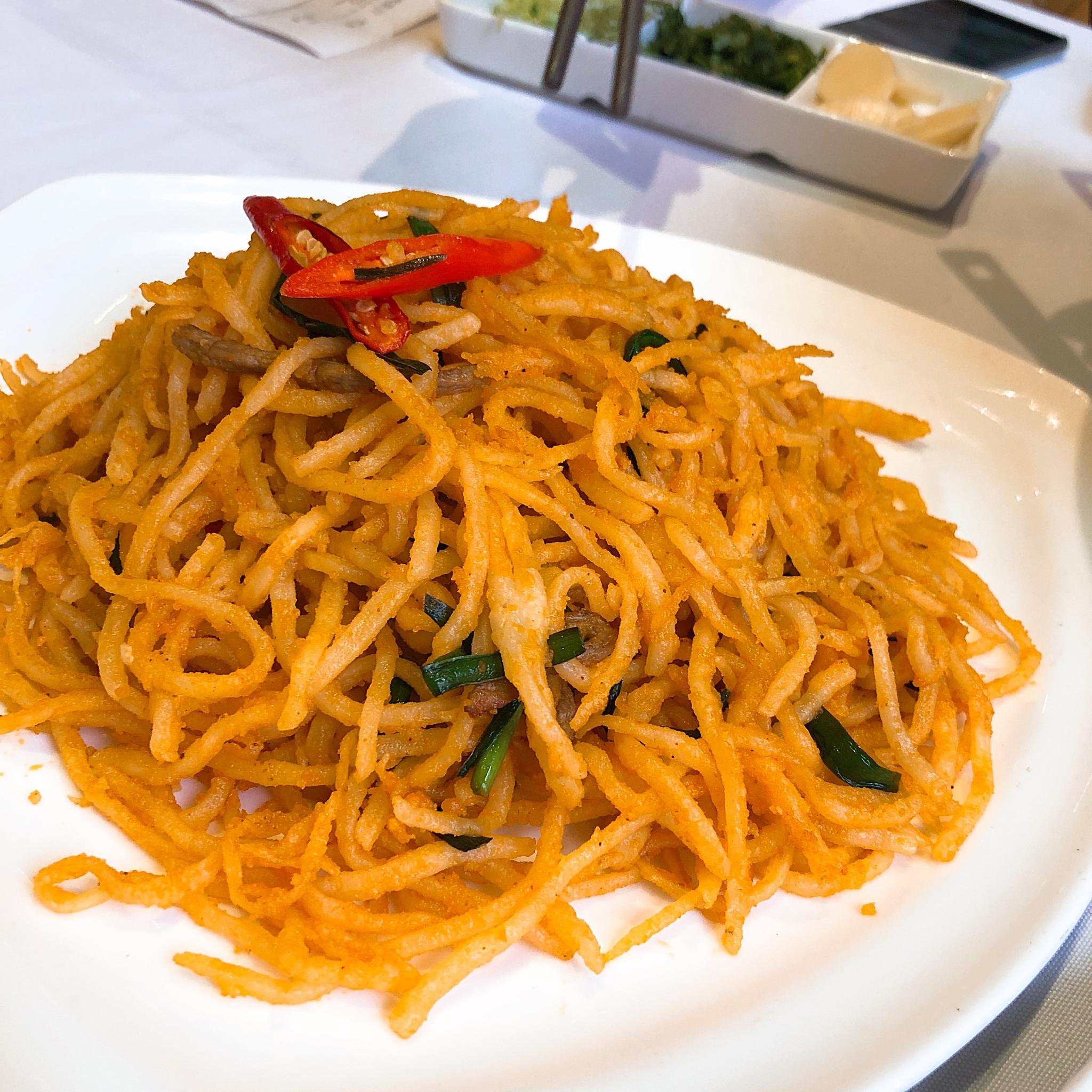 洋芋擦擦:洋芋擦擦外酥里软,味道稍微有一些淡,不太符合我们一家人的口味。