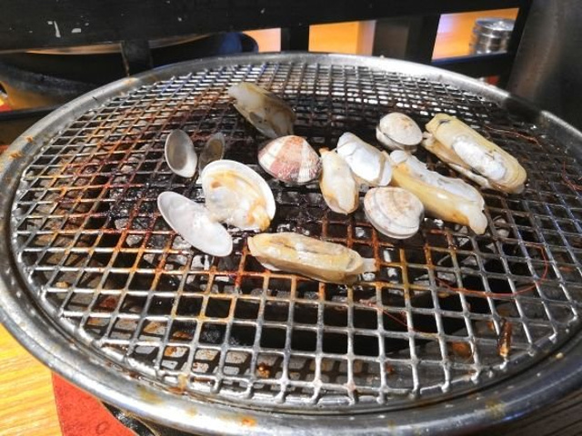 由于是逢八的日子,所以有特价优惠券,排队的人特别多,整整两个半小时才吃到,算是排队时长纪录了。菜品确实非常超值,生鲜的虾子,牛肉,牛舌都非常新鲜有韧劲,烤好的羊肉,秋刀鱼等也很美味,而且还有鲜活的蛏子和花蛤可以烤(当然比较残忍),饮料都比较实在,鲜榨果汁尤其赞。 诀窍: 烤盘感觉中间部位烤得快,四周略慢。 使用喝啤酒的大杯装饮料,效率会很高。 如果现场取了午餐的券,但排号要长时间等,记住只要下午四点半之前上桌都算午餐券时间,超过就视为晚餐(比午餐略贵)。 提议: 桌子下可适当放垃圾桶以便食客自行倾倒废弃物。 饭后清胃的主食只有南瓜粥,如有银耳羹,酒酿元宵之类更好。 总之性价比非常高,十分超值。