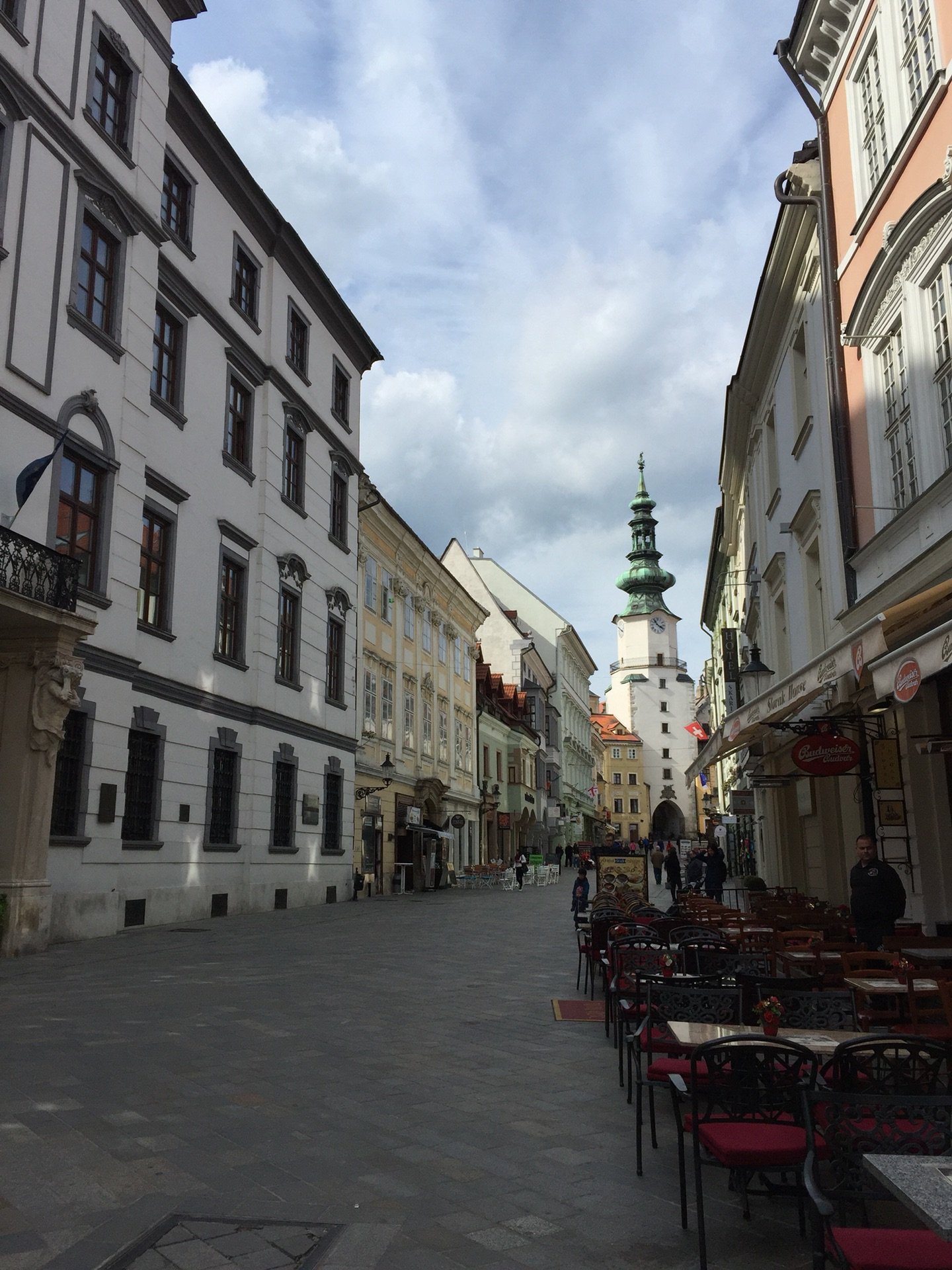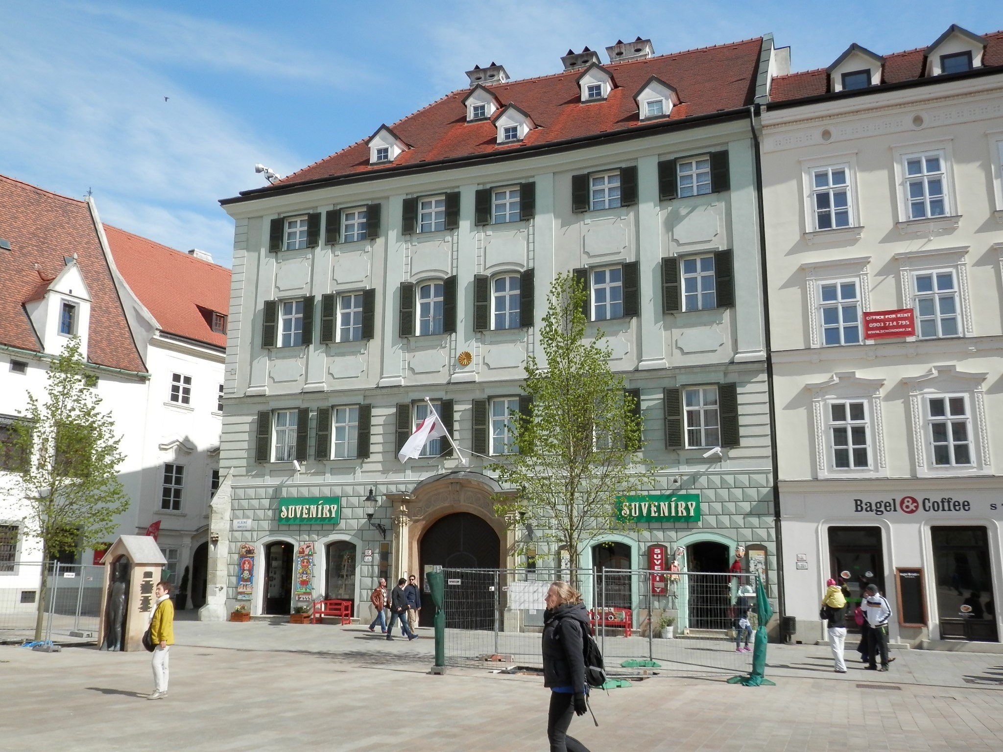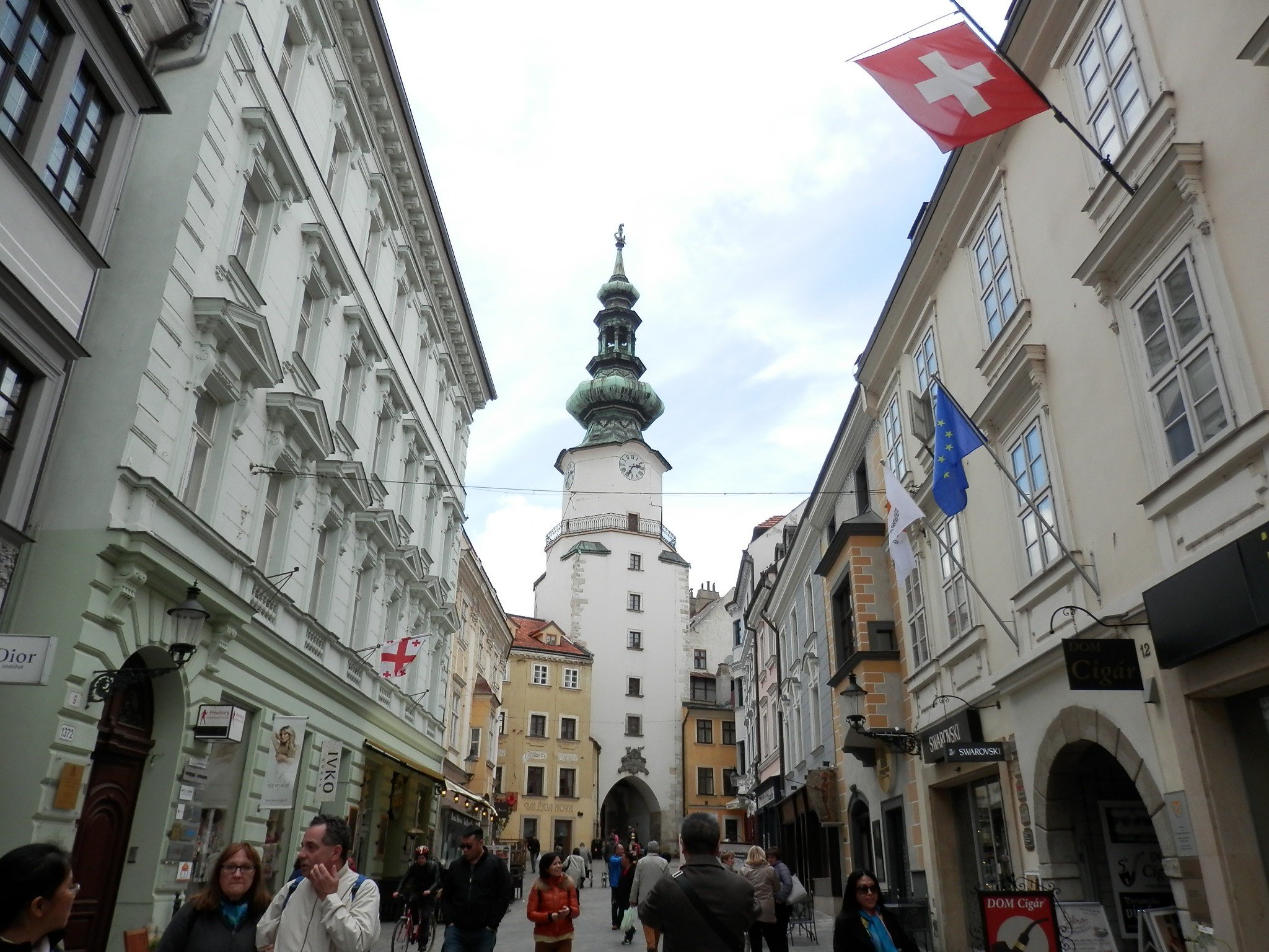 下图【米榭尔门(Michalskabrana)】是古城墙里保存下来的唯一一座中世纪的城门,城门之上是高51米绿色尖顶的钟塔。塔顶是天使圣米榭尔的雕像。如今塔内辟为小型兵器博物馆。