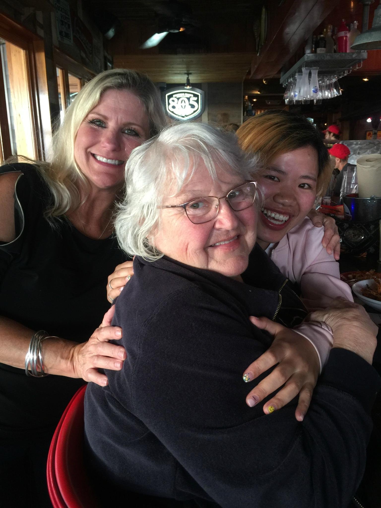 我:顿时不知道如何接下去,只记得她说了这句话之后,内心被一击,我还未成婚,未有自己的孩子,可是当听着她说,人生最快乐的事就是生了自己的女儿们的时候,我想,也许这就是爱的力量吧!后来她女儿过来,言语间,无不流露出对妈妈的感恩,与骄傲。老奶奶离过婚,但是很坚强的把两个女儿带大,吃了很多苦,但永远没有放弃希望。是啊,人生也许就是这样,这里恰好想借用阿甘妈妈对他说的一句话:life is like a box of chocolate, you never know what you are gonna get.但是,最重要的是,永远不放弃那个希望,毕竟,hope is a good thing。😀 于是与奶奶还有她女儿一起留了张照片。