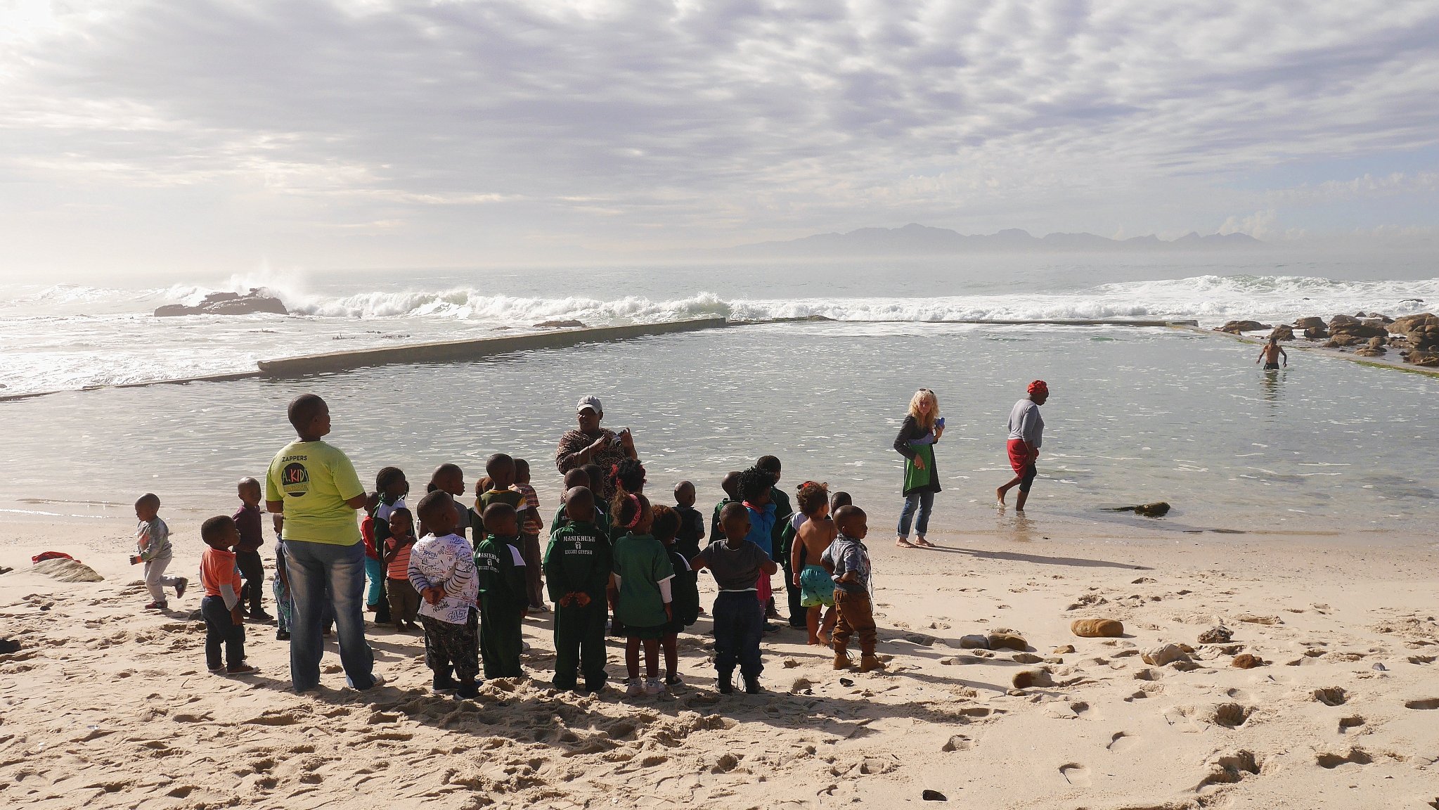 有一群幼儿园的黑人小朋友也来这里玩耍
