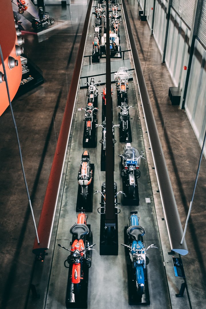 博物馆三楼是一个不对外开放的仓库区,我们隔着铁门窥探储存了上百辆哈雷的库房,深感震撼。