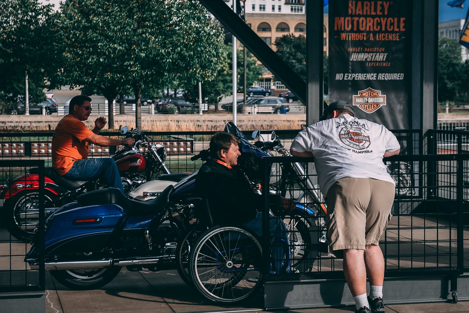 离开时看到正在愉快交流的车主和工作人员。哈雷是一种生活态度,是一个文化小圈子,也是全球车友彼此拉近距离的黏合剂。