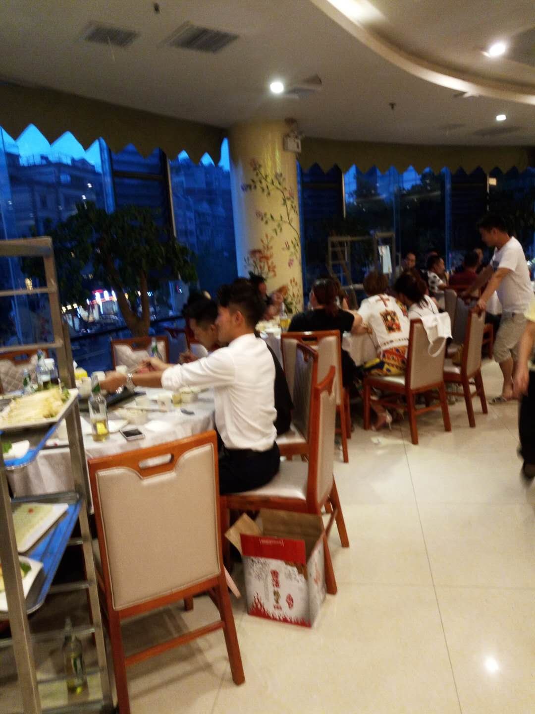 斌子说这家芈重山森林火锅在当地很受欢迎,晚上带我们来尝尝。这里人还不少,斌子说是提前预定了位置才免去了排队的麻烦。